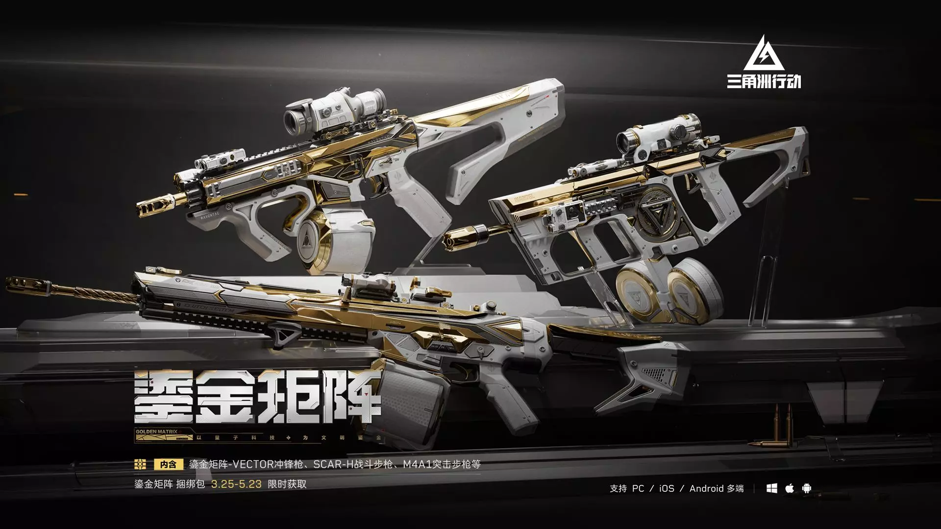 三角洲首个职业赛事系列外观【鎏金矩阵】亮相!3月25日-5月23日,烽火春季赛期间限时上架! 【鎏金矩阵】系列外观以白金色为主调,棱角分明的矩阵结构与冷冽金属交…