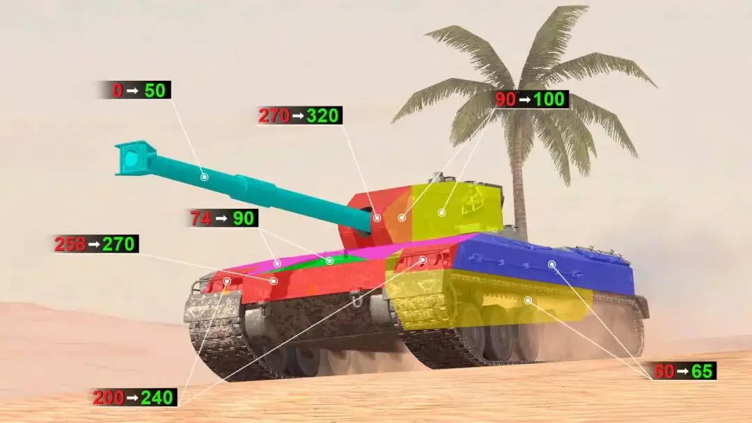 高效穿甲弹/破甲弹/高爆弹平均穿透力由255/300/53毫米调整至270/340/90毫米