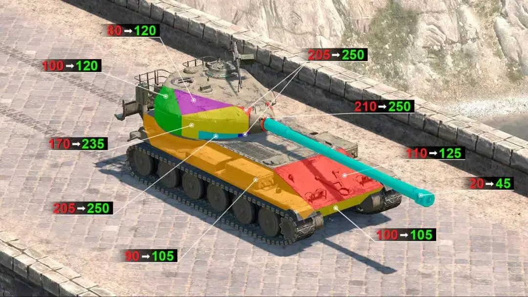 穿甲弹/高效穿甲弹/高爆弹平均穿透力227/265/68毫米调整至250/315/68毫米