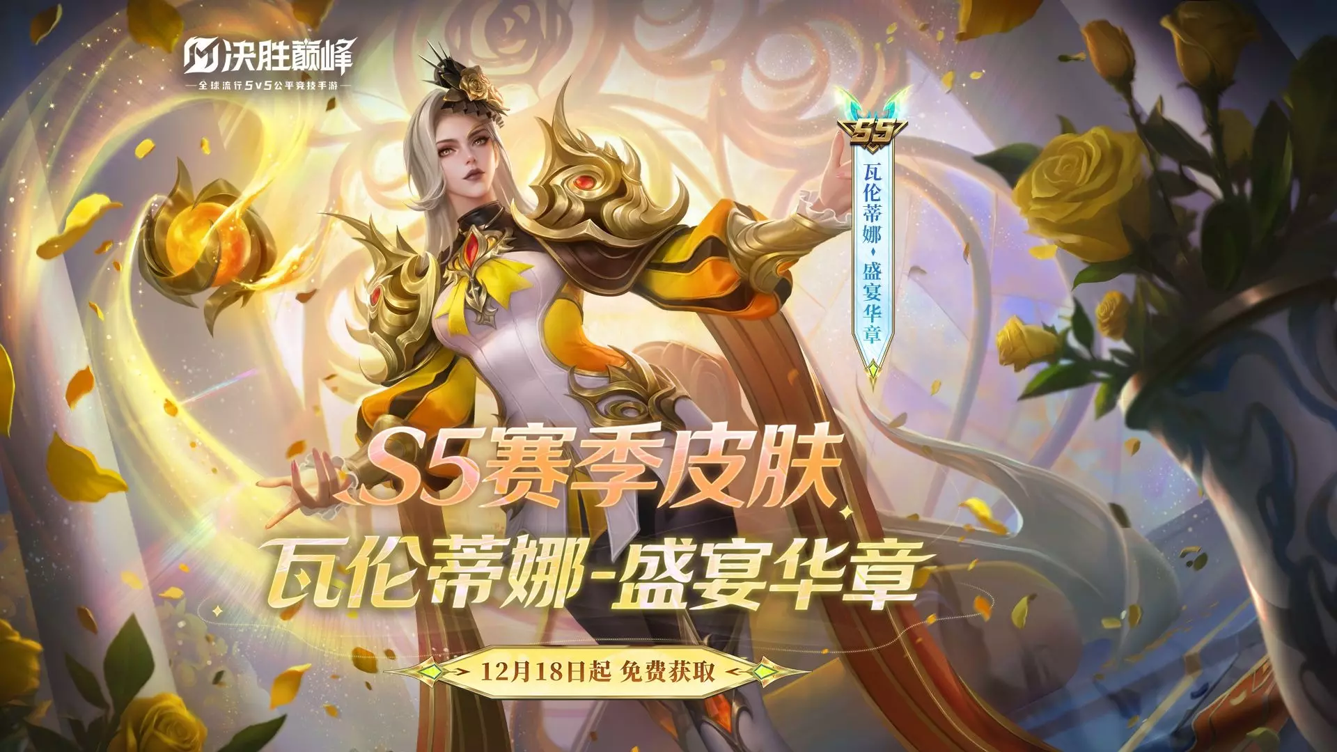 12月18日,S5赛季限定皮肤瓦伦蒂娜「盛宴华章」正式上线,参与10场排位对局即可免费获取! *展示内容均为测试版本,以实际上线为准 《决胜巅峰:乘云直上》S5…