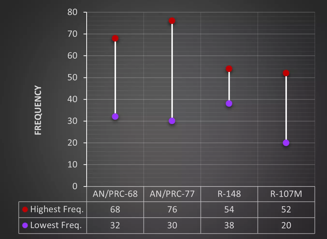 游戏中美国陆军有两台可在60兆赫兹频段工作的无线电,而苏联陆军无法达到如此高的频段。