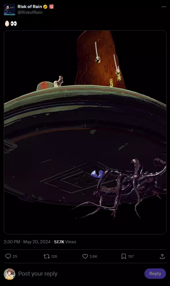虔诚圣物 虔诚圣物 用利莫里亚蛋替换损坏的无人机。给予一个孵化物品以获得追随者。所有利莫里亚追随者均会获得物品效果。 图案: [三角形,菱形,三角形] [正方形,菱形,正方形] [菱形,三角形,菱形] 图案位置:Twitter帖子[x.com] @RiskofRain在Twitter上发布了一张包含圣物代码的图片。