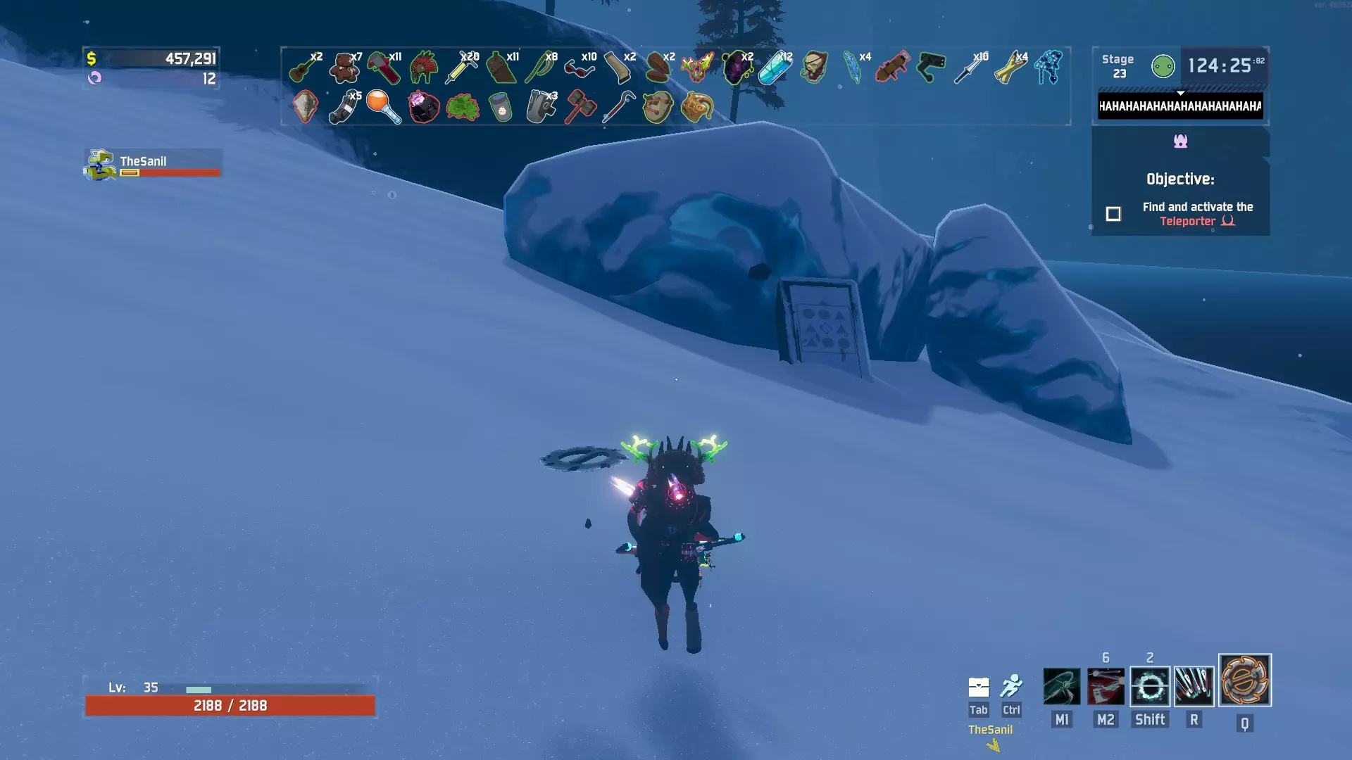 展示《雨中冒险2》神器的位置及图案输入方法。 解锁方式 要解锁每件神器(除“重生”外,详见该部分说明),你需要在壁垒神龛完成一项挑战。若要进入这个隐藏区域,需在天空草地地图下方移动并输入一个图案,然后在图案输入区域后方的屏幕上确认(无需看到图案即可输入)。若输入正确,传送器会开启一个传送门;若输入错误则会失败,你可以重试。 (注意:进入传送门后,你尝试解锁的神器将在本关卡生效,离开关卡后失效。)如果你打算继续你的游戏进程,请注意这一点,因为某些神器可能会改变你的游戏进程,例如“元祖”(Meta)会改变你的幸存者。