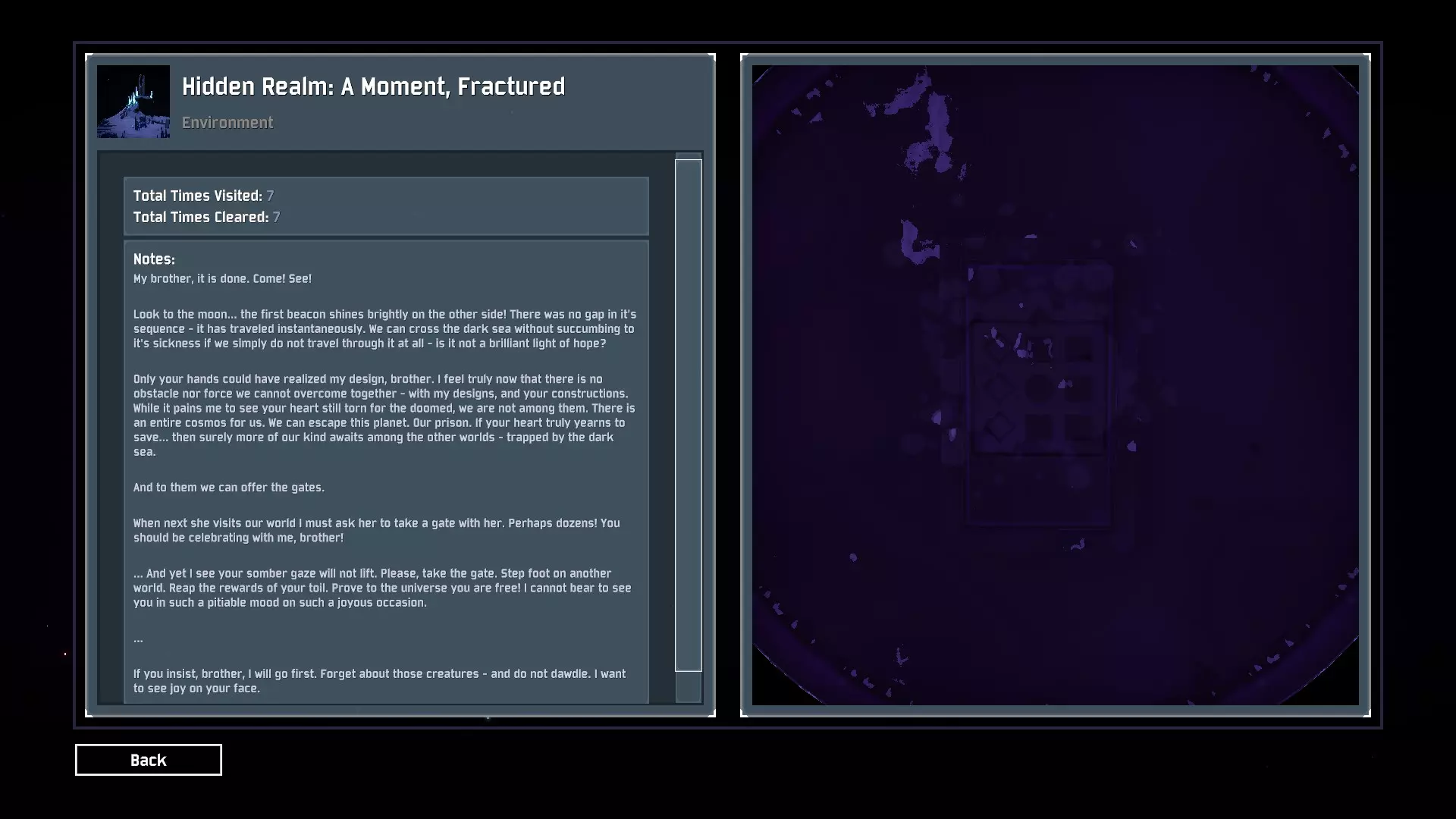 死亡 死亡圣物 当一名玩家死亡时,所有玩家都会死亡。仅在你希望真正将团队合作和个人技能置于终极考验时启用。 图案: [圆形,圆形,圆形] [方形,三角形,方形] [圆形,三角形,圆形] 图案位置:湿地地貌。 在舞台下方洞穴内的N'kuhana祭坛处。