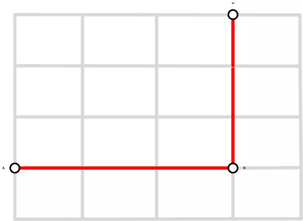 图2:主要兴趣点间的直达路线。 直达路线不一定意味着从一端到另一端的最短路线(图1)。它可以绕经主要兴趣点(图2)。这在保持快速服务的同时提供了一定的灵活性。 访问便利性