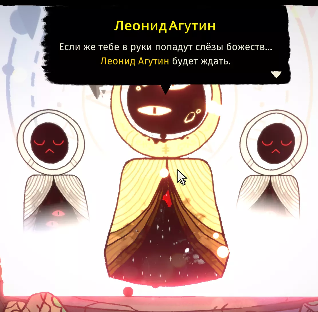 他要求完成4个任务。 1) 给他鱼 2) 给他追随者 3) 给他2个追随者,否则将永久失去半颗心 4) 交出我们唯一的兄弟克里索,从而彻底失去剩余的人性 :( 无名之神(来自更新内容)
