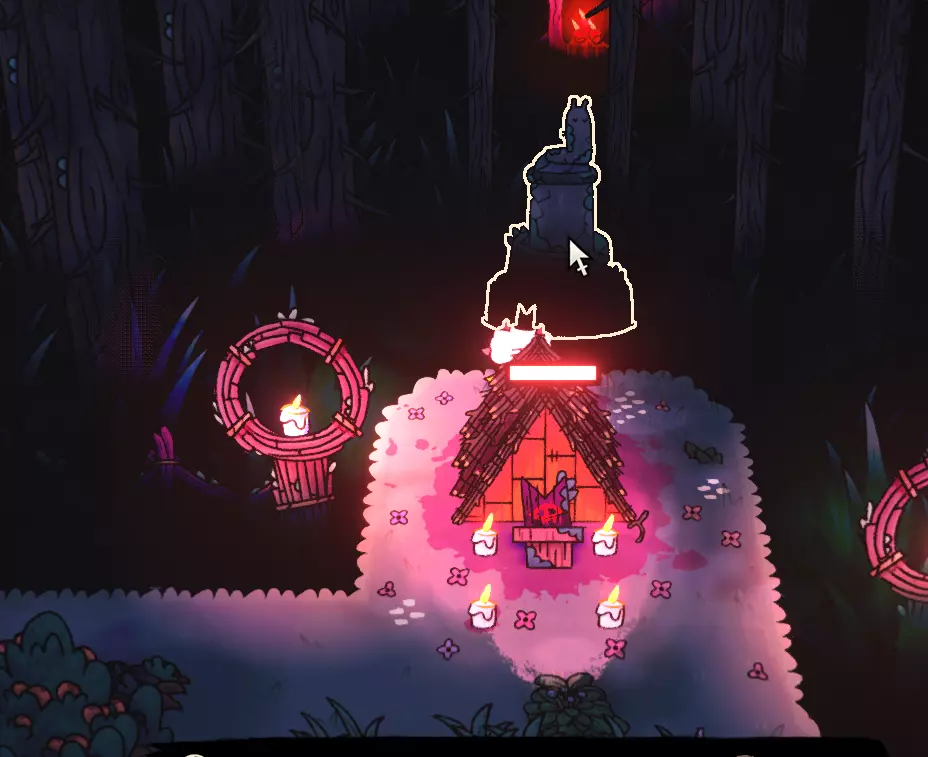 这里很简单,需要给他4个追随者来将他们转化为黄金。顺便说一下,如果仪式正在冷却中,这是个处理老追随者的便捷方法。第五个也是最麻烦的……无名的红色猫咪(狐狸?)