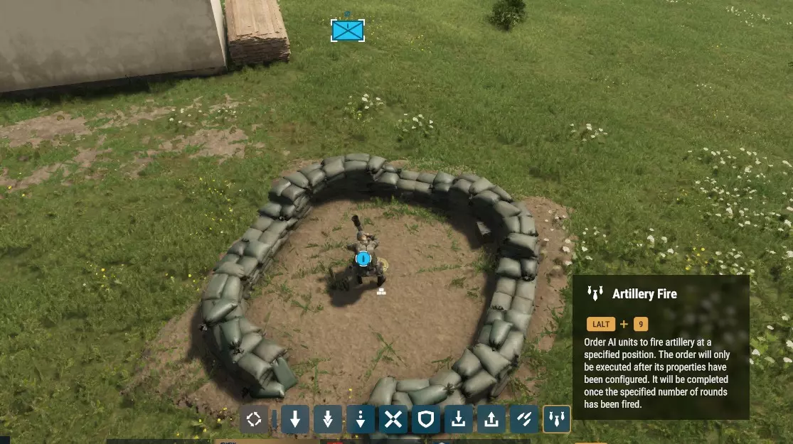 AI迫击炮 若你希望使用AI操作迫击炮,可以通过“进入”命令让AI士兵登上迫击炮,或将其直接部署在迫击炮上。之后,你可以使用下方所示的“火炮射击”命令来下令进行迫击炮打击。