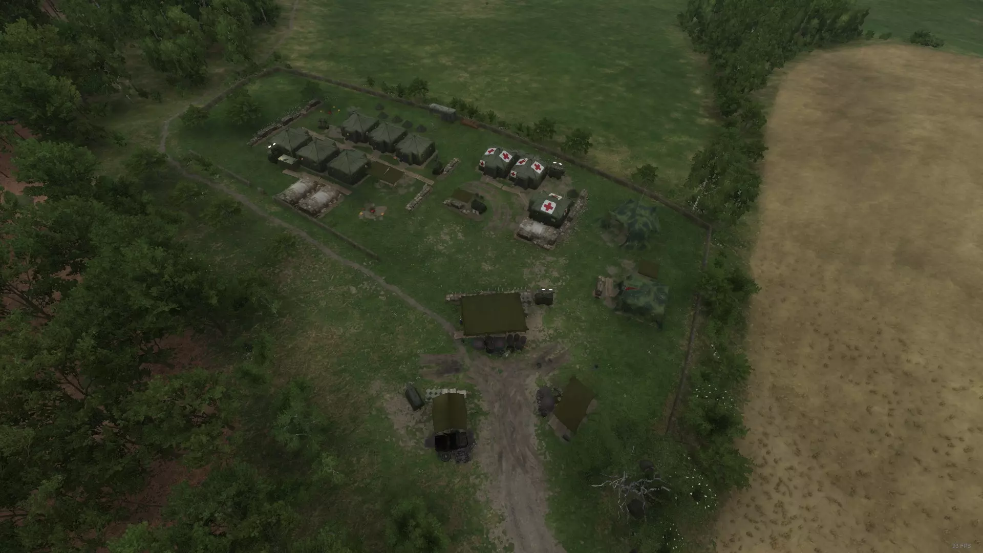 场景 在这个示例中,我在恩特雷德(Entre-Deux)城外建立了一个苏军基地(该位置与冲突地点相当吻合)。当前场景为:美军在重新配置无线电塔后试图推进基地,但遭遇了驻守步兵的顽强抵抗。这是一个精简基地,但仍有多个目标可供我们优先打击。秉持着“人道主义精神”,我们将把野战医院作为攻击目标,毕竟“战争罪行有限公司(Warcrimes R Us)”可不是浪得虚名。