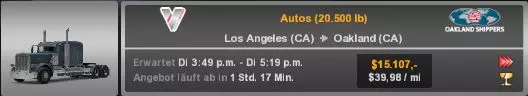 击掌 完成一次完美运输(无损坏、无罚款、准时),且任务里程至少为600英里 如描述中所述,你需要运输超过600英里的货物(绕路不计入里程),并且确保无损坏、无罚款且准时送达! 我想我喜欢这样