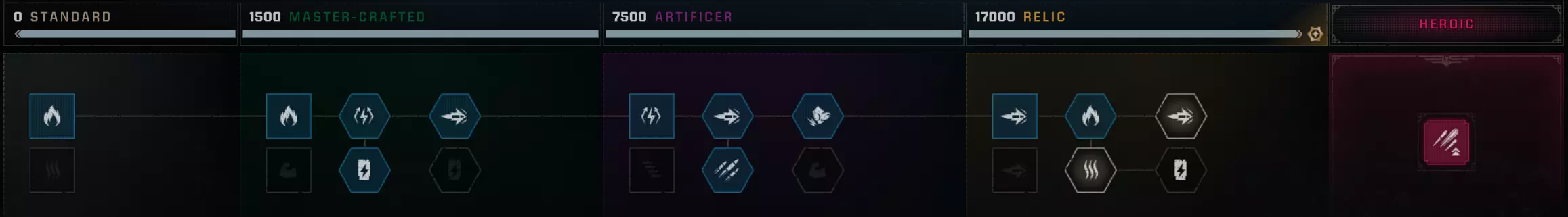 优点: - 远程伤害输出极高; - 群体控制能力出色; - 装备补给; - 弹药补给; - 决心值(Resolve)生命值恢复良好; 缺点: - 机动性较差; - 重姿态下无法闪避; - 若团队缺乏治疗能力,需注意保留生命值; - 必须保持专注,及时退出重姿态以闪避来袭攻击; 战术: - 重姿态下远程消灭敌人; - 若要补充弹药,尝试近战处决极限状态(Extremis)敌人。若队友使用重型(Heavy)职业,可让其近战处决极限状态敌人以补充弹药; - 尝试获取并使用热熔炸弹(Melta Bombs),职业特长会补充该道具; 评价: 重型(Heavy)职业对于快速消灭敌人波次和对首领造成大量伤害至关重要。关于“坚韧”与“钢铁意志”试炼的结论