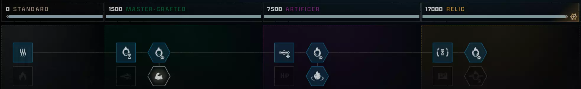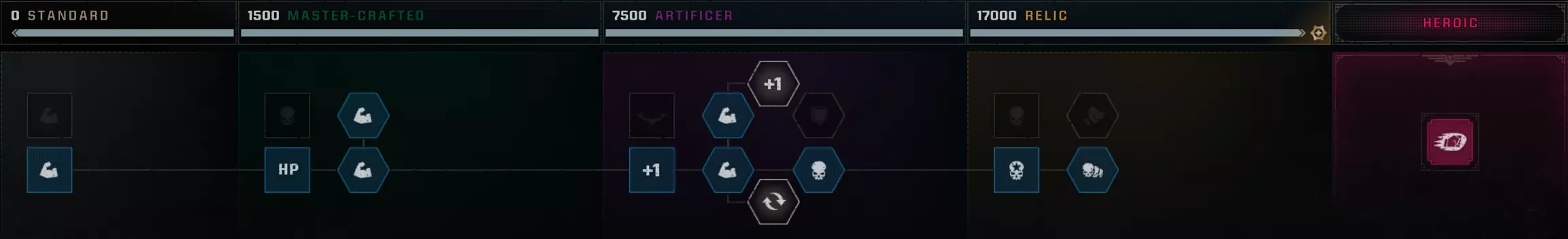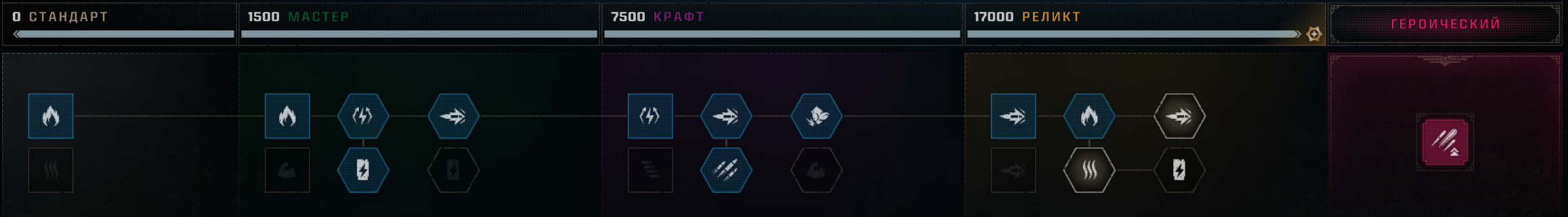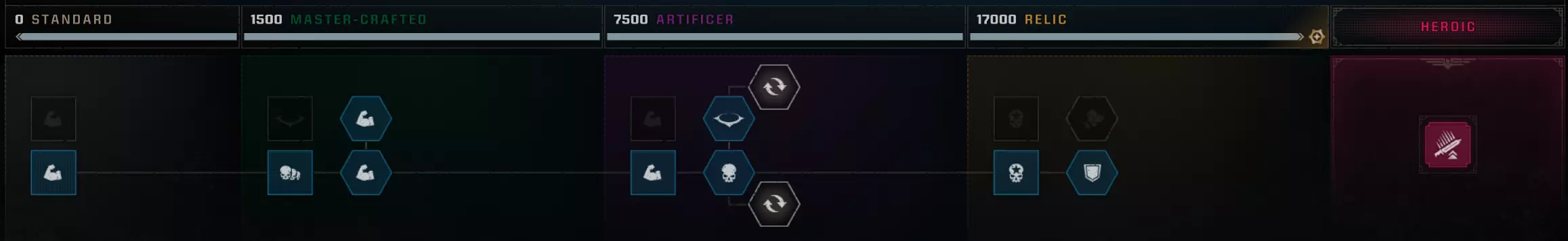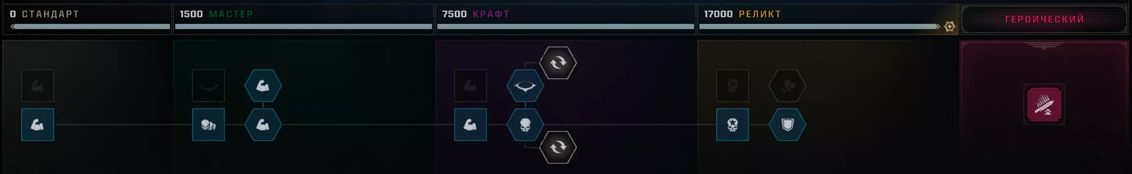 战略专精 - 使一个职业达到最高等级 要达到最高等级的奥达利(Ордалия),需要将所有职业提升至最高等级。 没什么难的,只需完成任务获取经验即可。 1级,推荐难度 - 中等。 10级,推荐难度 - 显著。 15-25级,建议游玩难度 - 无情。难度:致命和绝对,选择时需自行承担风险,因为很可能会任务失败并白白浪费时间。 难度与获取经验值对应表[spacemarine2.fandom.com] Strategic specialty - 将一个职业升至最高等级 要达到最高试炼等级,需要将所有职业都升至各自的最高等级。 这并不太难——只需完成任务并获取经验值即可。 等级1:推荐难度 - 普通。 等级10:推荐难度 - 较高。 等级15–25:建议在无情难度下进行游戏。难度:致命和绝对——尝试这些难度需自行承担风险,因为任务失败和浪费时间的可能性很高。 以下是详细说明经验值与难度等级关系的表格[spacemarine2.fandom.com]