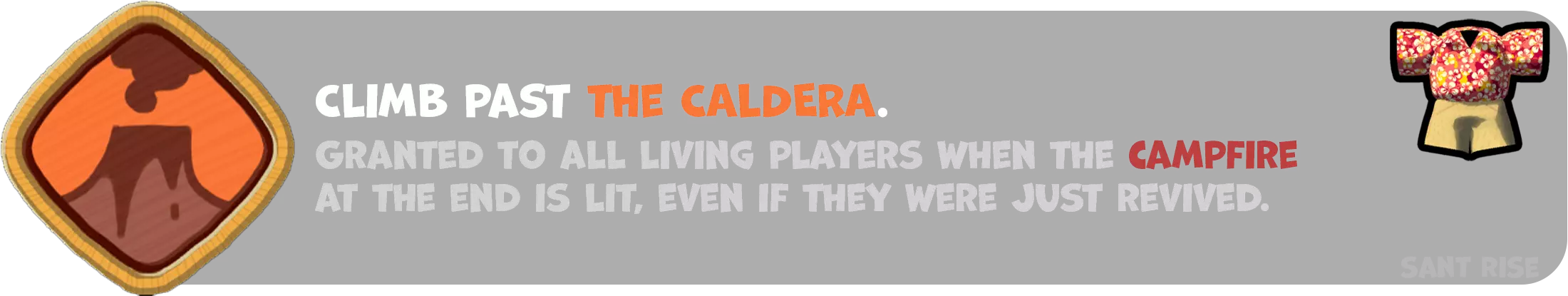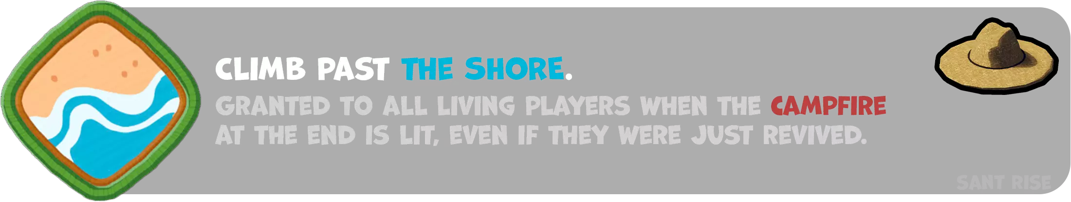 该徽章在《热带》游戏的第二个区域结束时解锁,前提是你已生起篝火。