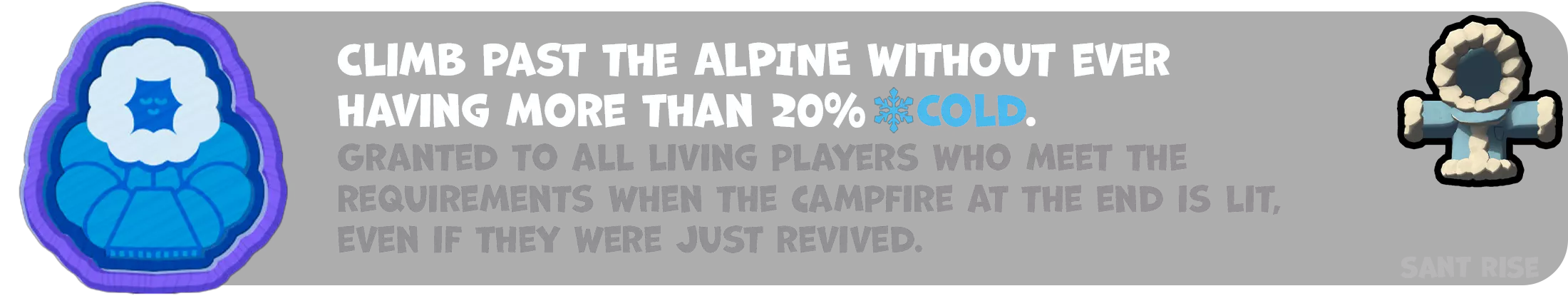 该徽章在《阿尔卑斯》游戏的第三个区域末尾,点燃篝火后解锁。