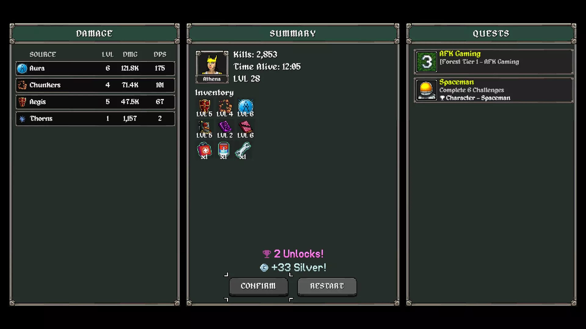 可用角色 以下是我唯一取得过成功的角色,按从最佳到最差排序: 雅典娜:我是使用雅典娜完成此挑战的,她是最可靠的角色,能让你顺利度过第一个小Boss。我建议如果你已解锁她,或者至少在尝试前解锁了圣盾(Aegis),就选择她。 大力士(Megachad):最容易解锁,主要缺点是经验宝石经常掉在光环范围外,因此早期必须装备吸引魔典。 忍者:他的近战武器在早期能很好地刷怪,升级获得的闪避能力也提供了不错的生存能力。 武器 考虑到经验收集的原因,我认为只有极少数武器适用于此挑战。任何远程武器都会让大部分经验值无法获取,并严重阻碍你的成长能力(除非你很早就找到吸引类魔法书),因此应该避免使用。武器的选择顺序对结果也有很大影响。从雅典娜开始,尝试按以下顺序获取:埃癸斯、爆破弹、光环、武士刀/剑(可选)。在我看来,这个顺序至关重要,因为过早选择光环可能会让你无法拾取远处的经验球,而爆破弹能为埃癸斯在攻击间隙充能提供不错的临时缓冲,并且对精英敌人和小Boss有很强的击退效果。我只用了3种武器就完成了挑战,但如果你解锁了4种武器,我认为剑和武士刀是不错的选择。如果你有较高的吸引力且需要更强的清场能力,也可以选择香蕉或骨头。 魔法书 在这个挑战中,可用的魔法书比武器更多,但知道选择哪些以及何时选择可能会决定一局游戏的成败。以下是影响最大的魔法书: 再生魔法书:在我看来这是最重要的,受到伤害几乎无法避免,因此能够快速恢复生命值至关重要。吸引力魔典:早期的吸引力魔典能有效助力游戏进程滚雪球,提升1到2级就能让你更早积累灵气。 数量魔典:提供更多的庇护充能和更多的碎块生成器,通常是个稳妥的选择。 护盾魔典:额外的生存能力总是有用的,唯一的缺点是只有在几秒内不受到伤害时生命值才会恢复,所以如果没有先准备好合适的武器,你可能无法从中获得太多收益。 击退魔典:说实话,我不确定这本魔典在整体游戏中能发挥多大作用,但我用它赢得了一局,所以觉得它至少值得在这份列表中占有一席之地。荣誉提名装甲魔典和生命偷取魔典,我没在游戏中尝试过这两个,但回想起来,生命偷取似乎是个不错的选择。 耐心