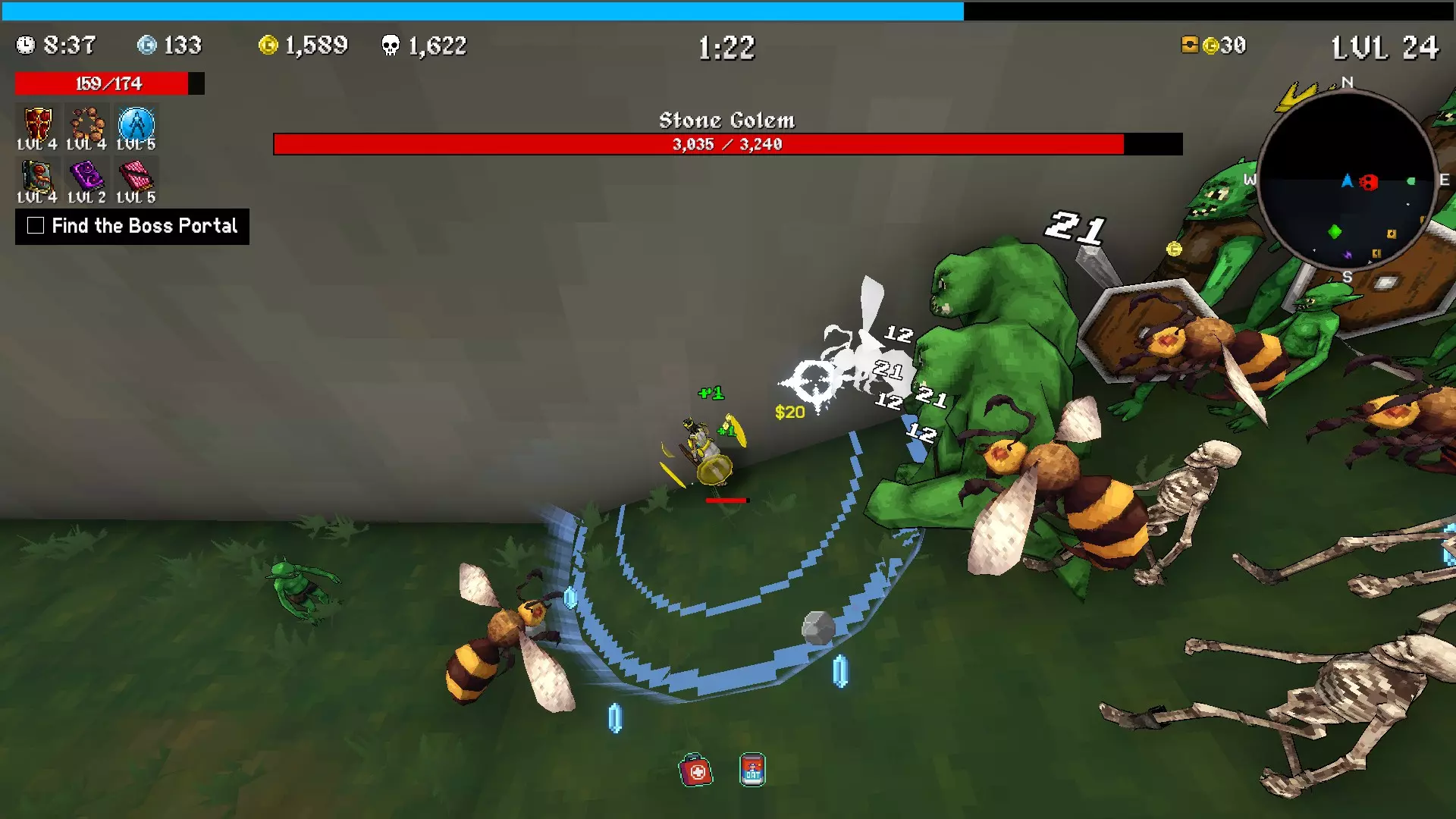 在这个例子中你会发现石魔像消失不见了,我很幸运地被推到了地图的外墙边,而这个小Boss就这么爬上了墙,卡在我上方整整两分钟。你仍然需要良好的生存能力来承受他的远程攻击,但能避免正面猛攻还是很有帮助的。 请对所有这些建议持保留态度,因为这个挑战在很大程度上取决于纯粹的运气和耐心。如果你对内容有任何问题或想法,请告诉我。我希望随着对游戏的了解加深,能进一步完善这个指南。 其他指南 https://steamcommunity.com/sharedfiles/filedetails/?id=3580565190