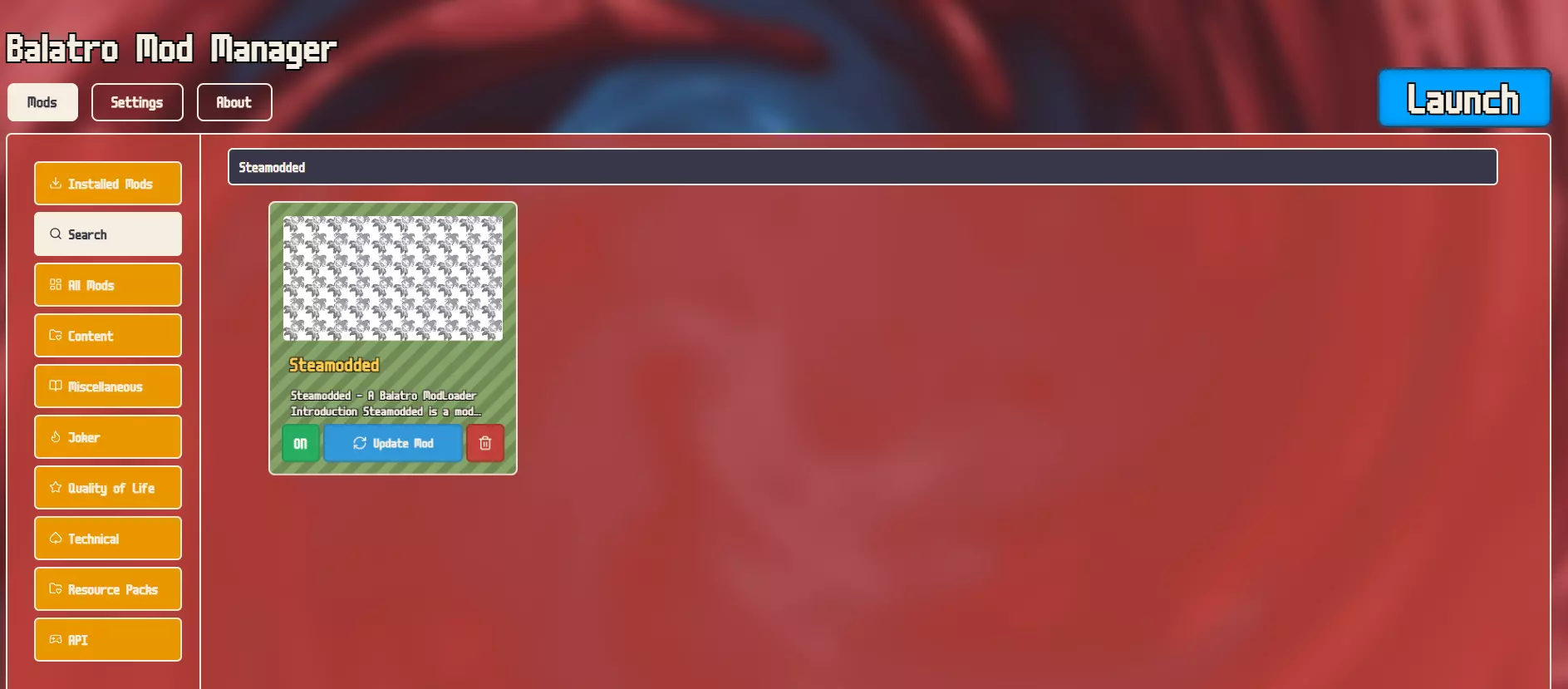 2) 巴洛拉特模组管理器 进入巴洛拉特模组管理器后,你必须安装名为“Steamodedd”的模组,没有此模组其他任何模组都无法使用,因此它应始终作为你的优先项。