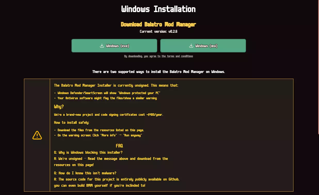 你是否在YouTube上看过有人玩《巴拉丁》时使用宝可梦模组或拥有超稀有卡牌组的模组,你也想尝试但完全不知道如何在没有Steam创意工坊的情况下使用模组?别担心,本详细且友好的指南将为你解决如何使用模组玩《巴拉丁》的问题。 1) 安装巴拉丁模组管理器(BMM) 你首先要做的是安装巴拉丁模组管理器。 使用此链接,该下载仅支持Windows系统: https://balatro-mod-manager.dasguney.com/ 进入该链接后点击下载。