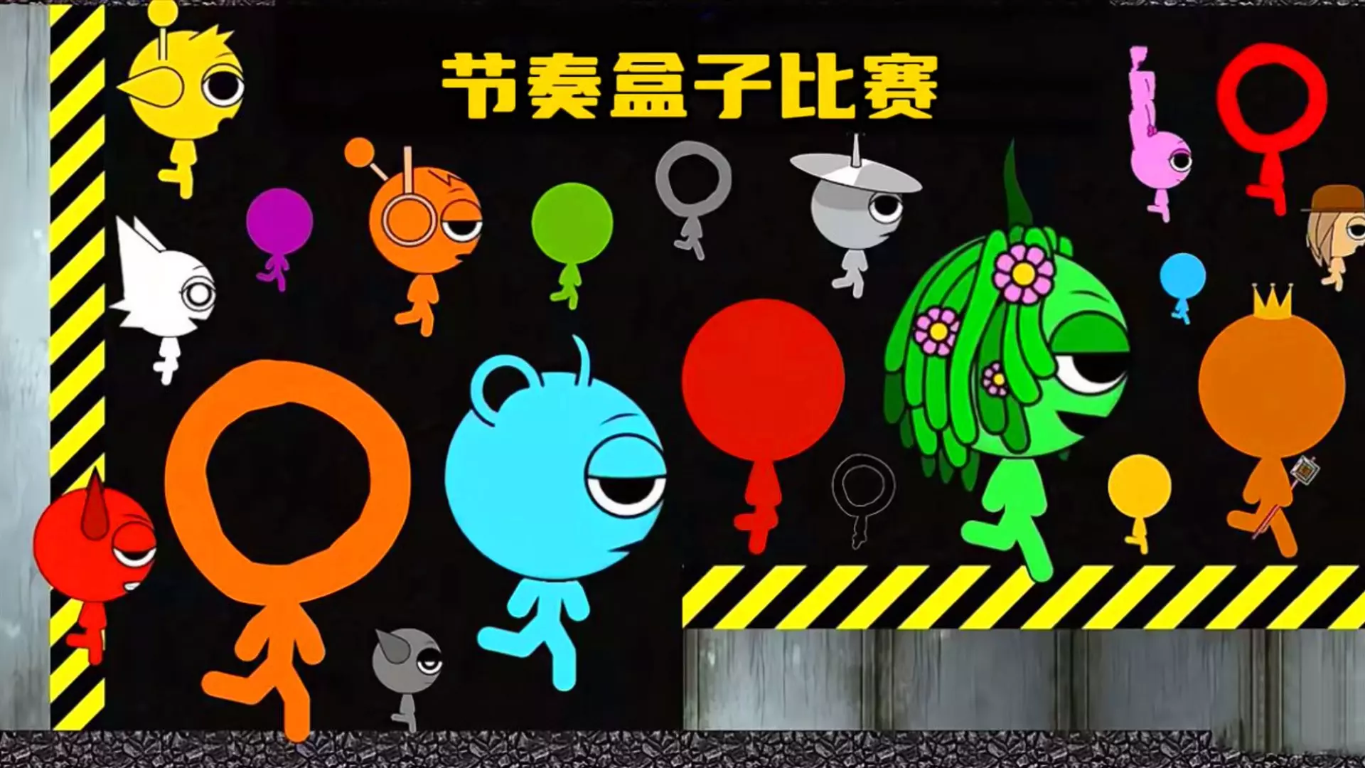 这是一幅Sprunki与火柴人结合的原创角色设计图,展示了多组融合后的特色角色形象,有持枪的战斗类角色,也有风格各异的拟人化角色,呈现出Sprunki和火柴人融合后的创意视觉效果。