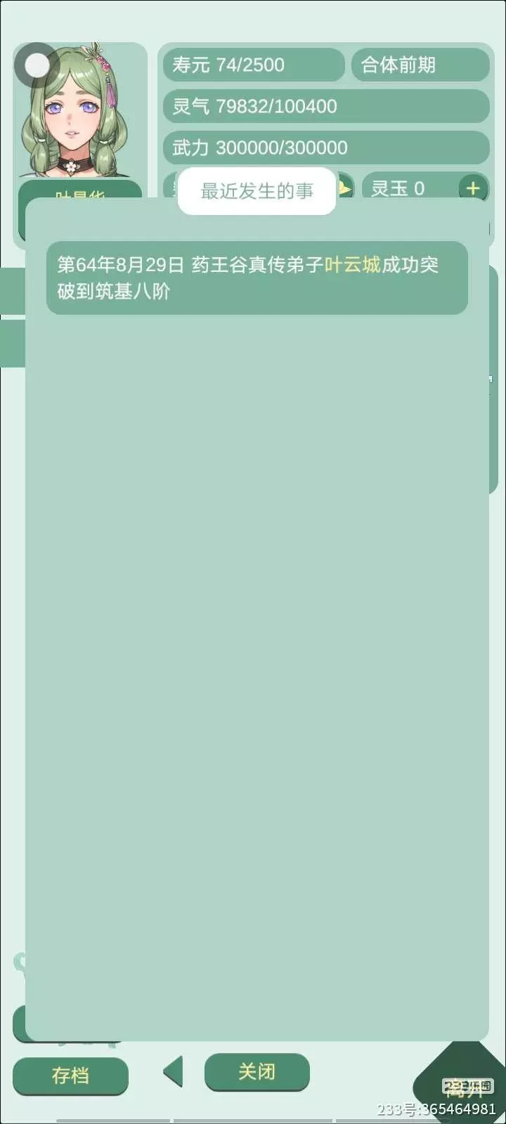 之前快50岁了,结果两眼一睁还是筑基四阶,发现他还暗恋我之前救治过的一个病人(我就说她第一次来我这的时候,我家那逆子还没有在她旁边,第二次来了之后发现我家逆子在他旁边,特么的,关键是人家有道侣呀),也是给他硬生生喂到金丹,他的突破率一直在降,我准备喂到元婴,到那时我差不多飞升了,我准备再玩会儿,钓一下万剑山的剑尊和10万大山的妖王,本来还准备钓魔皇的,只不过现在是女的,至于佛门,根本不敢想。太麻烦了,而且那个佛子飞升了