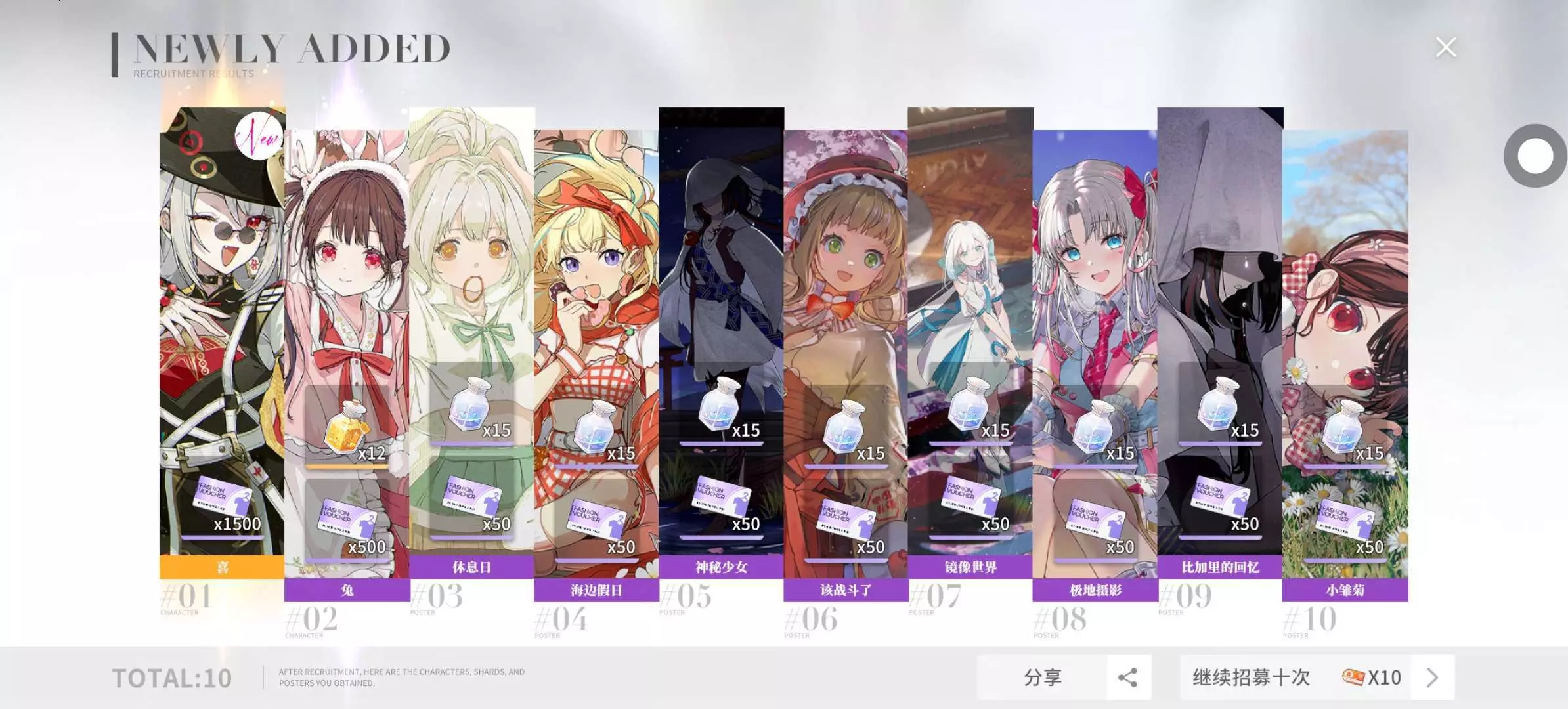 来来来,第1次10连就抽到了