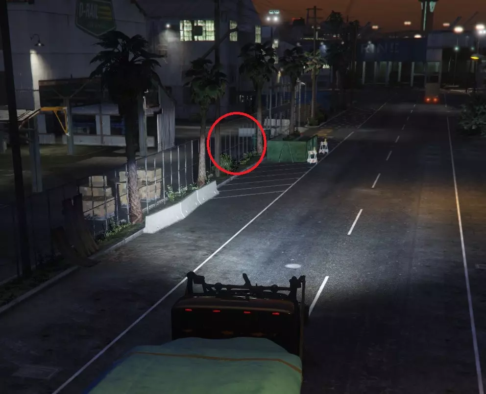 任务结束时最好切断(路线),以免驶过不便通行的大门。绿色集装箱左侧的围栏可以撞开并从那里通过。