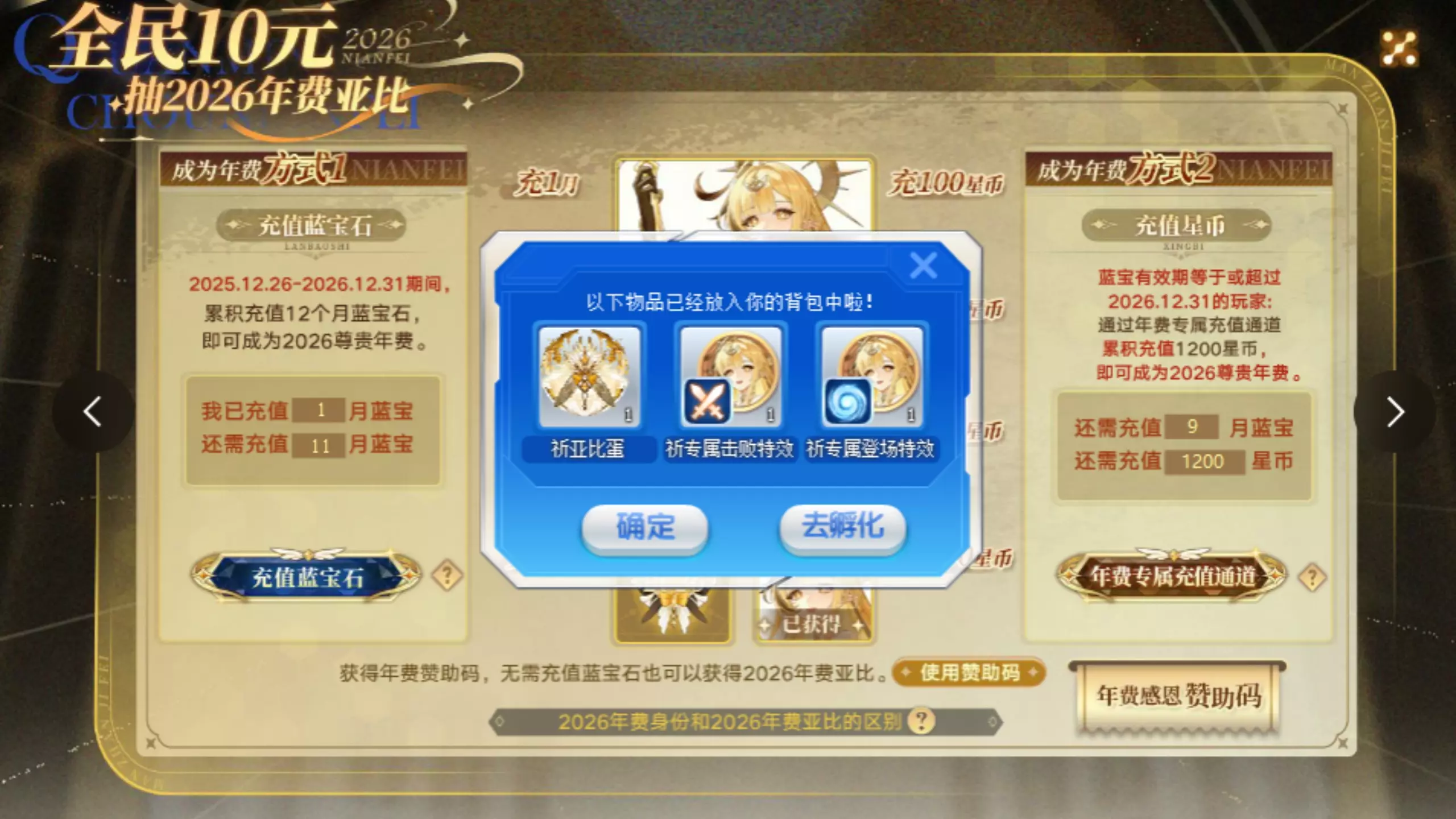 退游了好几年。回归充了一个月会员竟然直接给年费了!我滴妈呀。又想让主播爆金币了!