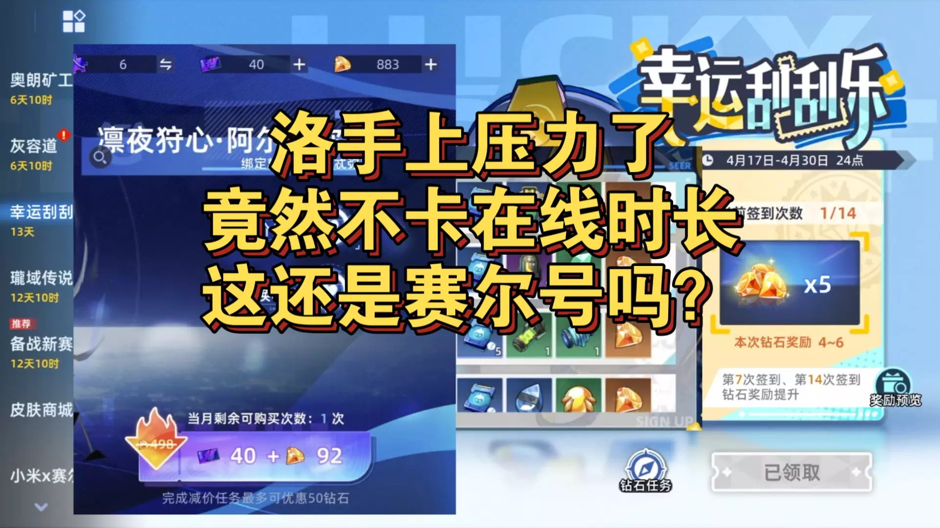 这是赛尔号的周更内容速递,本次更新可签到领取天邪龙王,幸运刮刮乐可获60-80钻石,14周年限定的“瓏域传说”系列皮肤回归,同时星际通行证也完成更新,还有新精灵喧云登场。