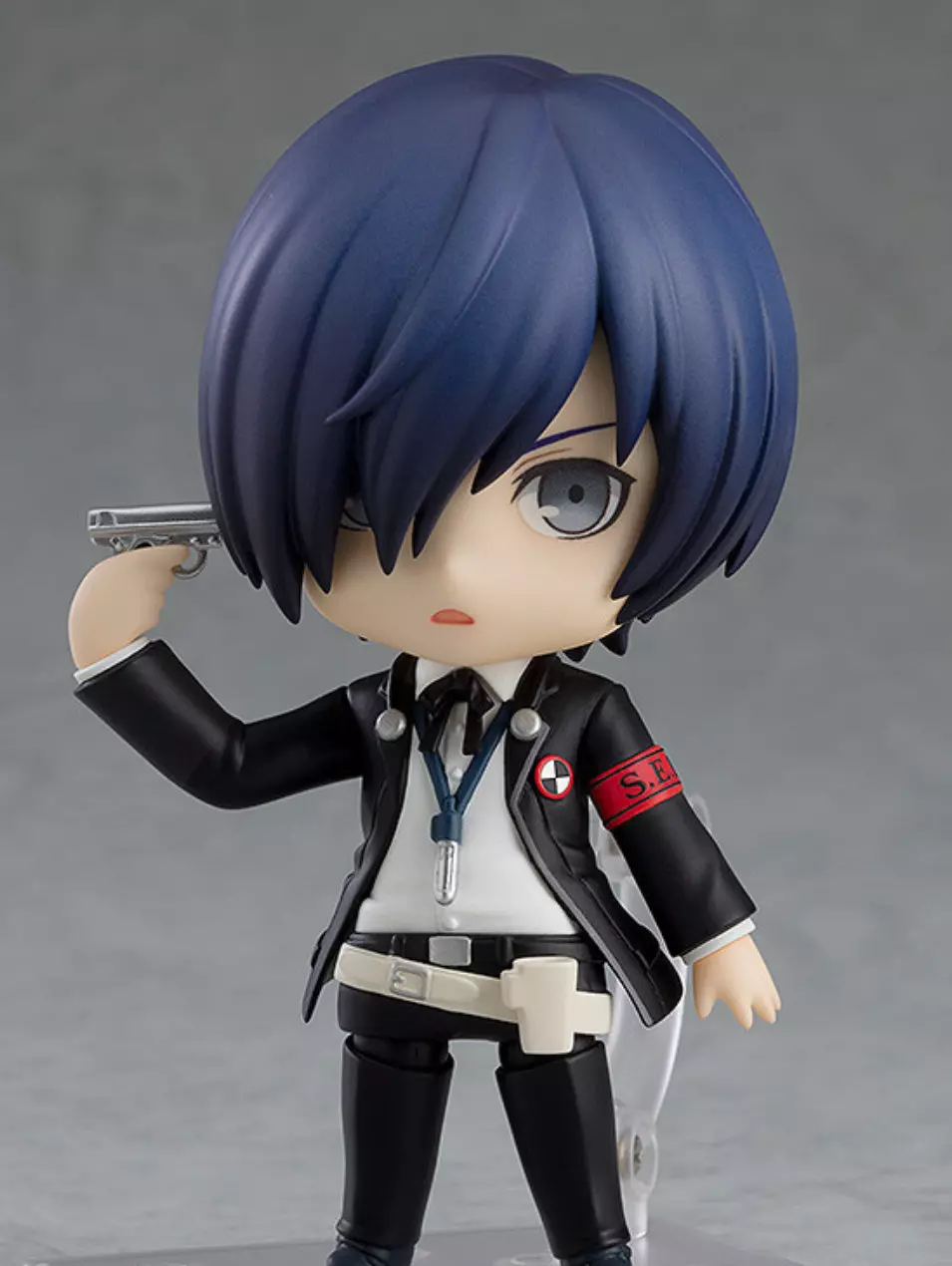 『女神异闻录5 皇家版』中,身着制服的「主人公」(Joker)的粘土人 表情配件:「冷静脸」「微笑脸」 可替换配件:「摩尔加纳」「手机」等 售价为:255元(原价)