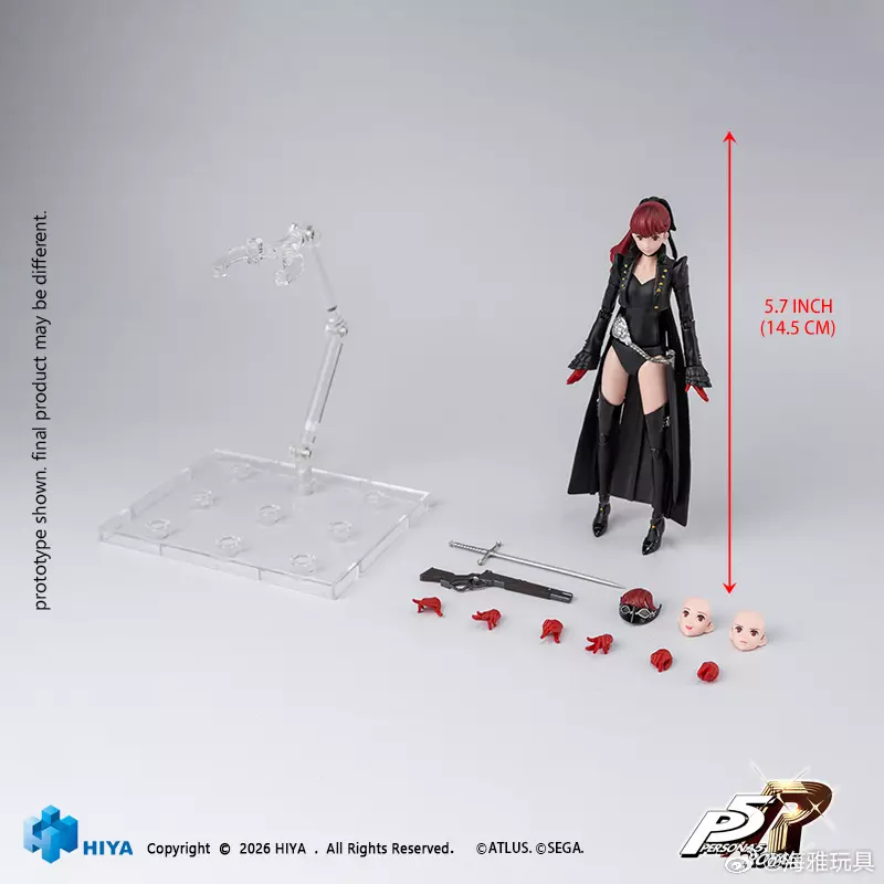海雅玩具 ✖ 【女神异闻录5:皇家版】 昨日,海雅玩具官方宣布推出芳泽霞1/12比例 可动手办。 商品规格:全高约14.5CM,1/12比例可动涂装完成品 商品内容:Violet本体×1,替换表情×2,替换前发×1,替换手型×6,细剑x1,火绳枪×1,底座×1 建议零售价:¥270元 预计发售时间:2027年Q1 (官方授权产品)