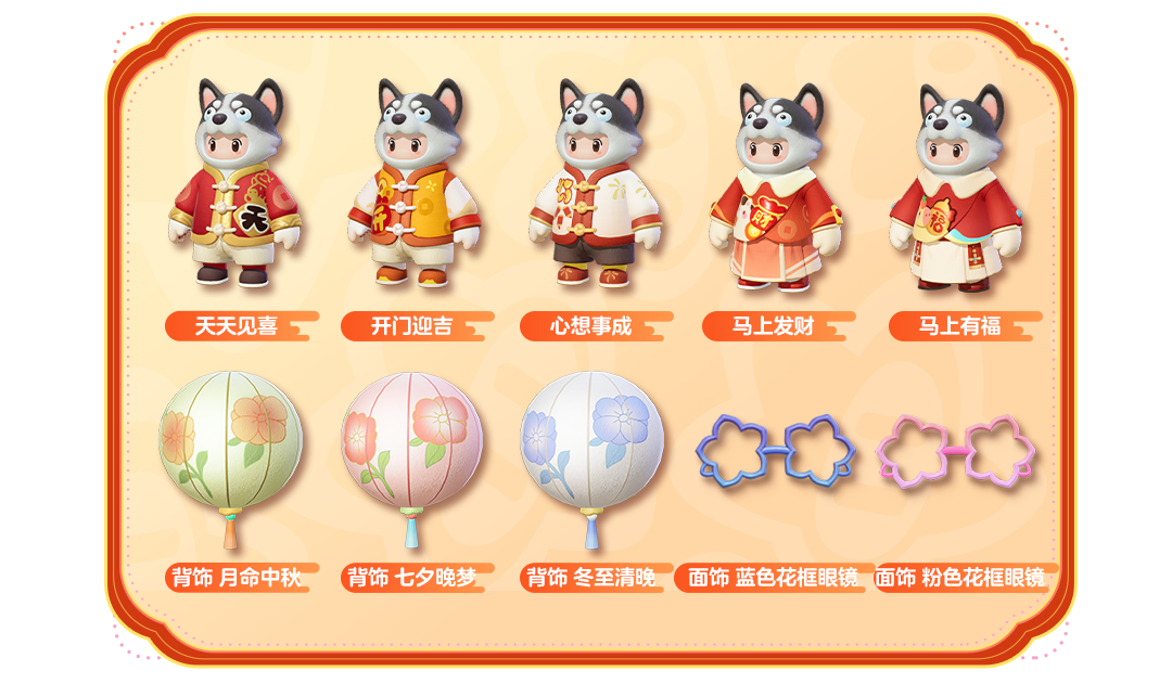 星宝们来到灰太狼身边,可领取福字道具