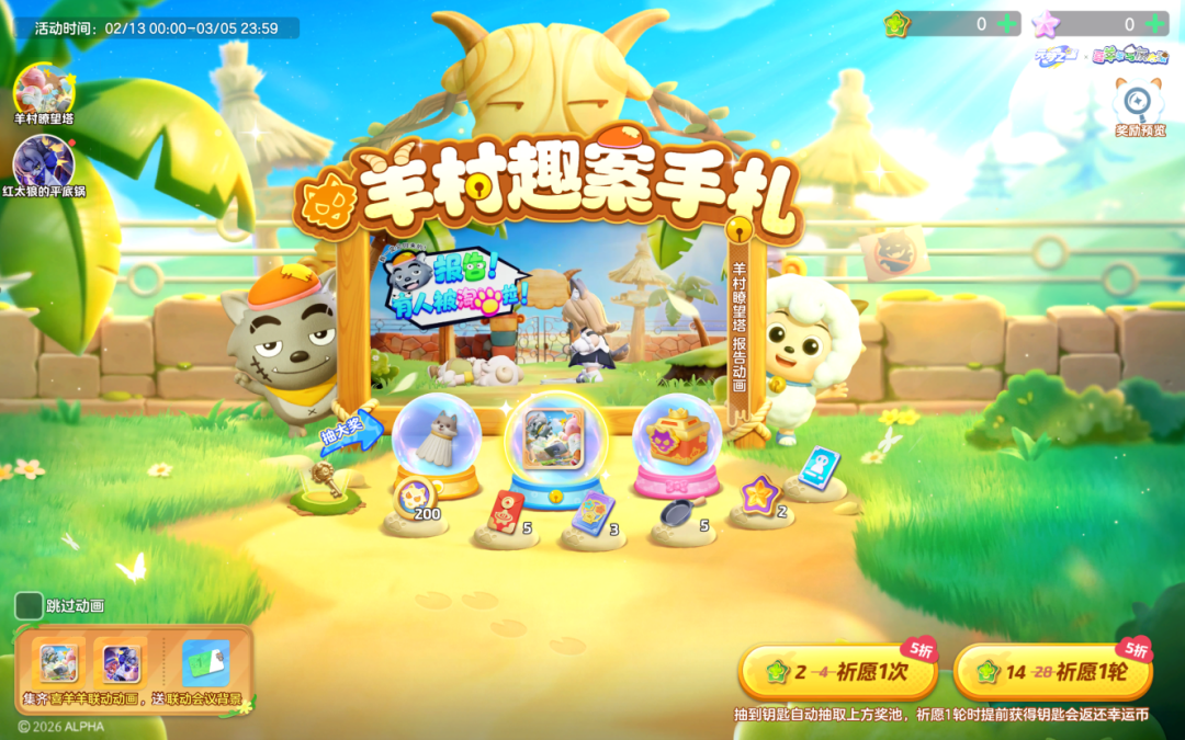 星宝们参与羊村趣案手札祈愿
