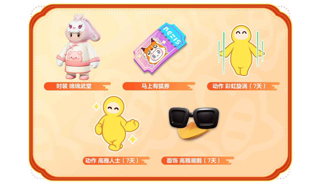 可获得时装 绵绵武堂、马上有狐券