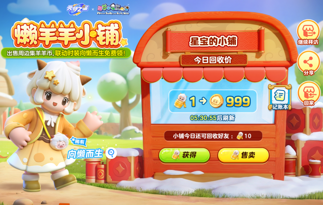 可售卖周边获得羊羊币