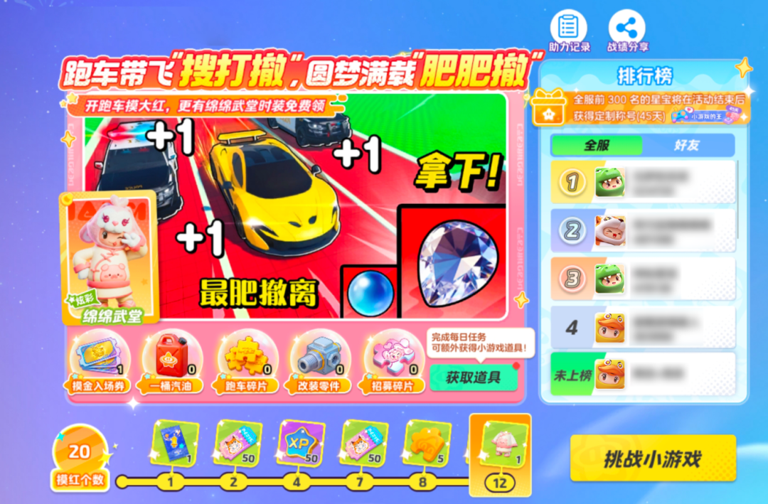 星宝们完成活动任务,积累进度值