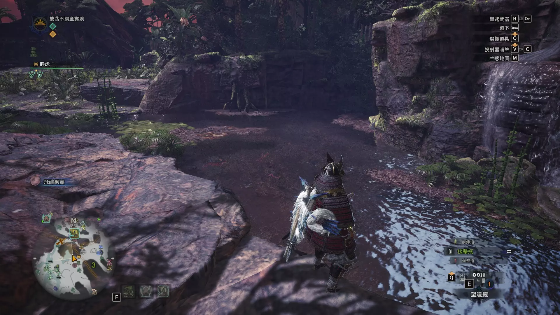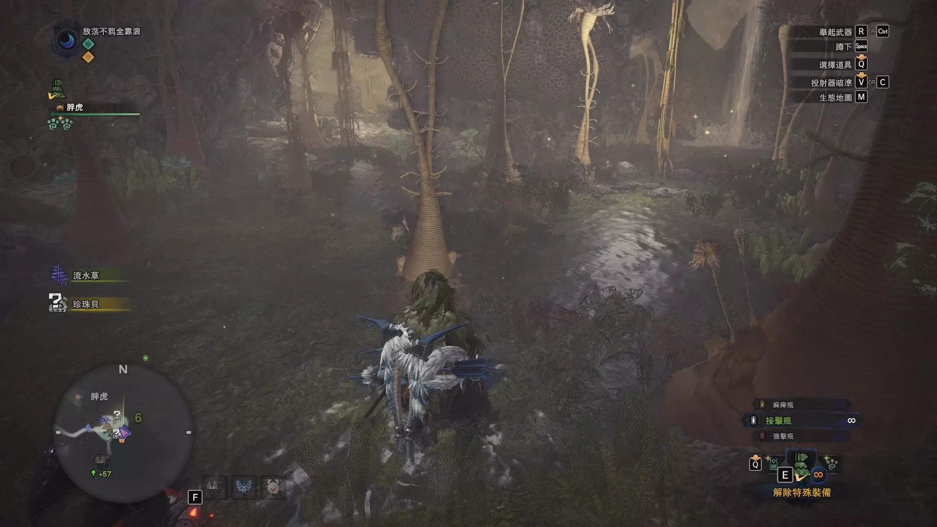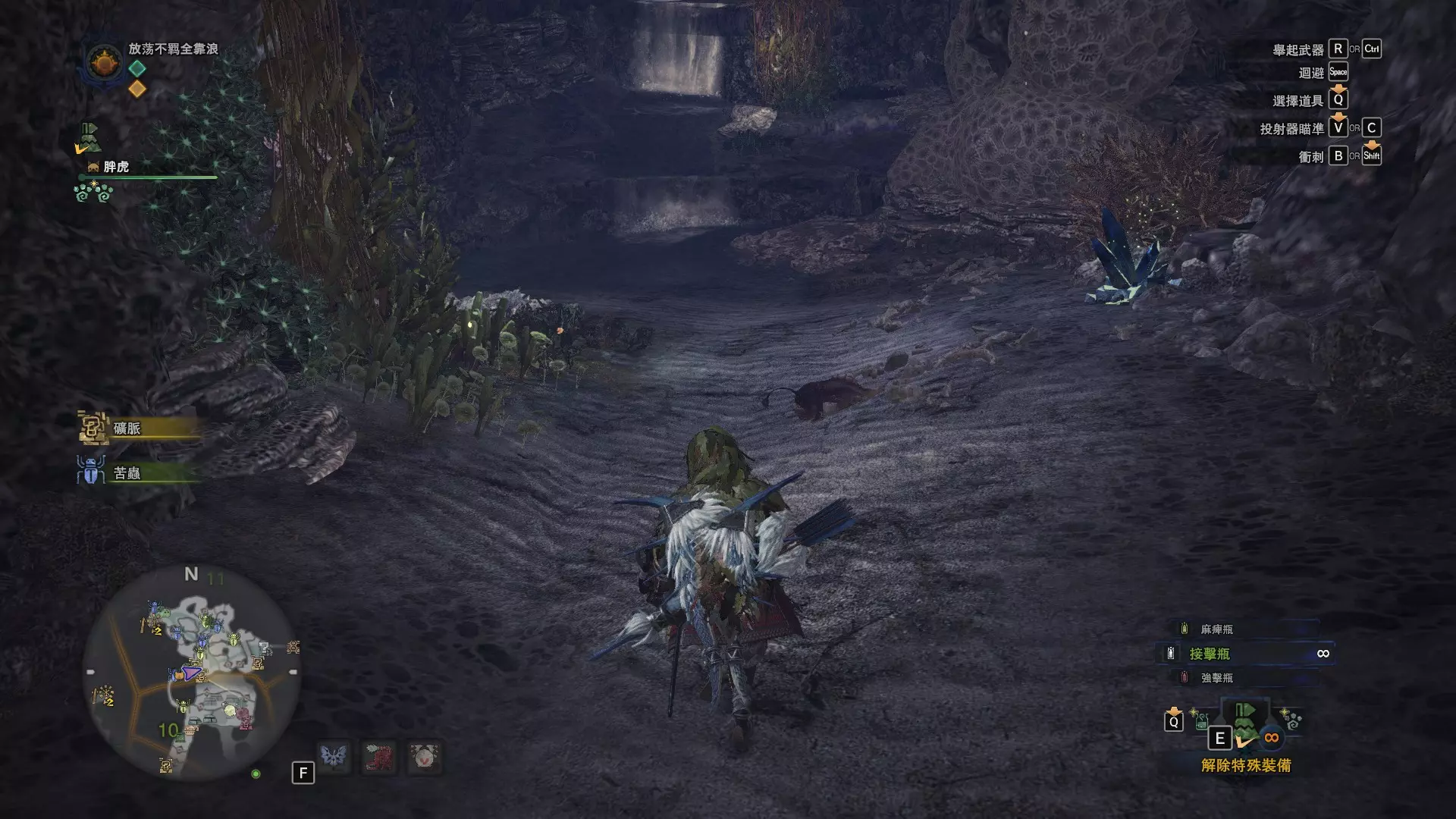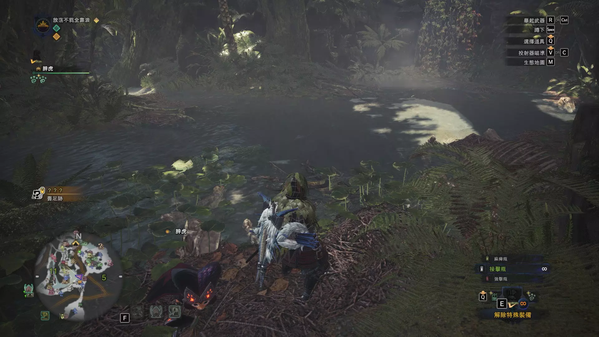 陆珊瑚台地 这张图没有推荐路线,主要是捕获「伶俐珊瑚鸟」和「摇曳鳗女王」,晚上时段在1区和3区到处逛就行,运气好的话一次就能遇到这两只稀有种环境生物 瘴气之谷 11区中央营地 [1],往下跳到高台,在光苔附近有几率能遇到「月光蜥蜴」——▶11区池塘 [2](6种巨大种鱼类)——▶15区池塘1 [3](2种巨大种鱼类)——▶15区池塘2 [4](化石汤釜和1种巨大种鱼类),到了15区后有几率会在菌猪背上遇到「粗毛秧鸡」