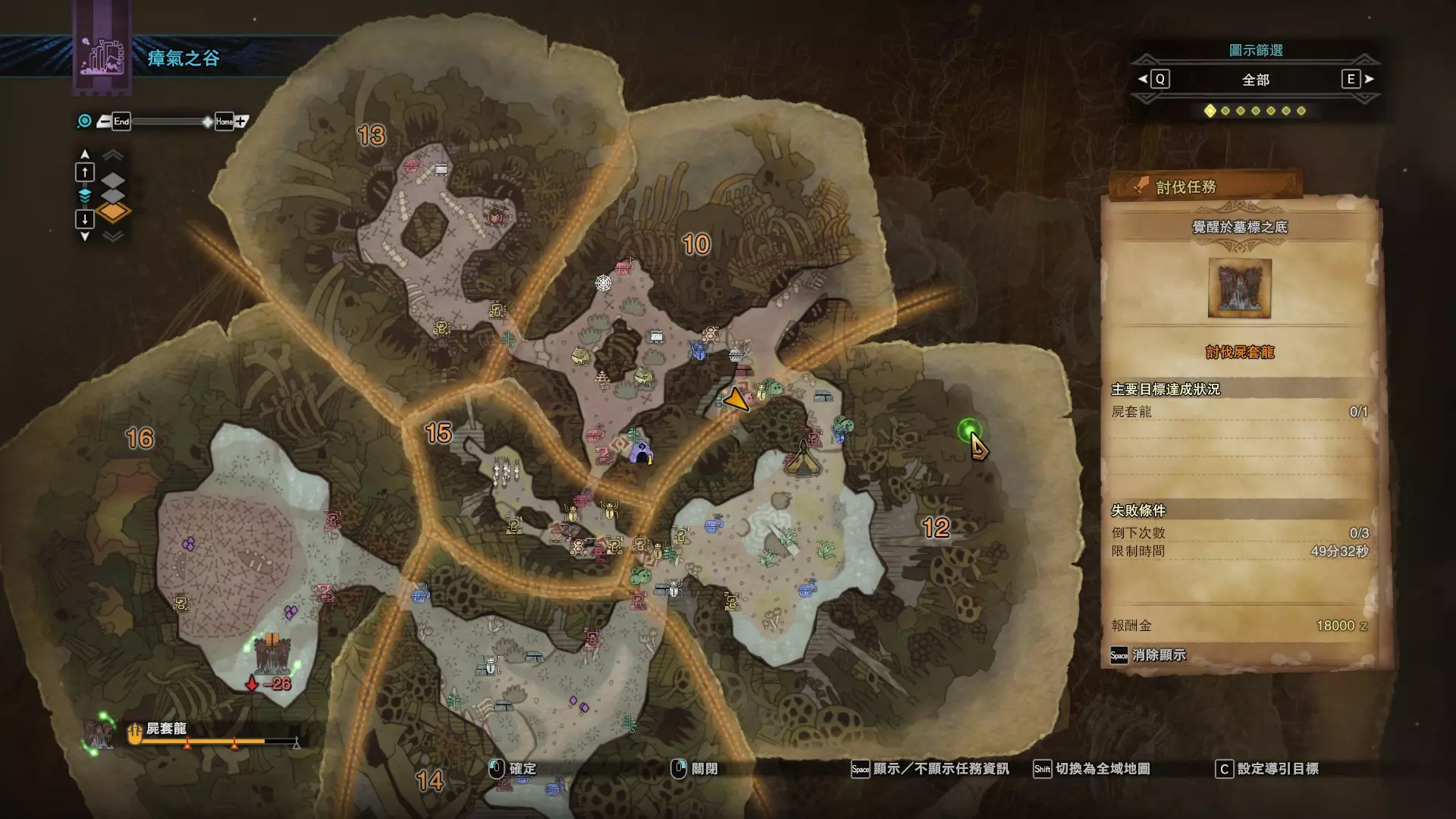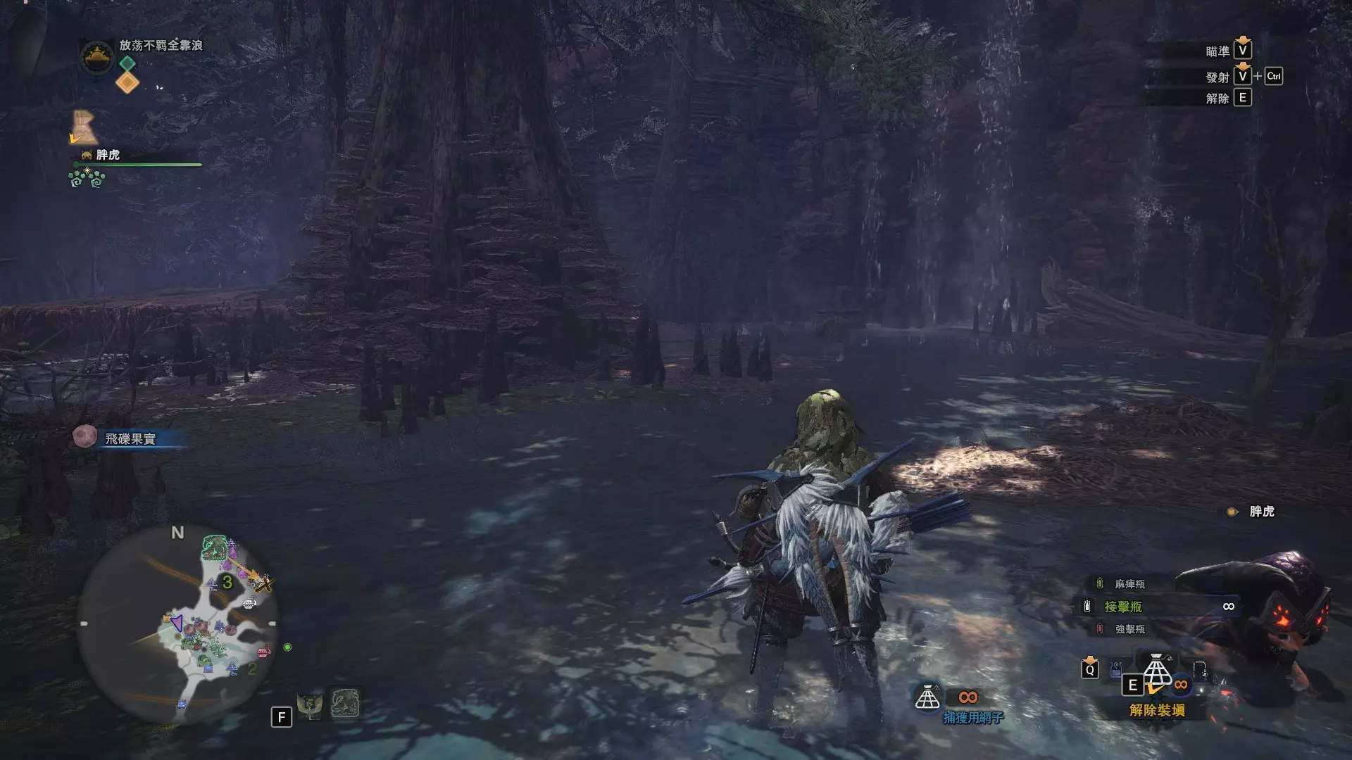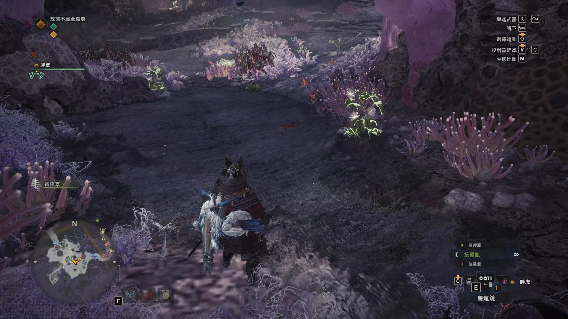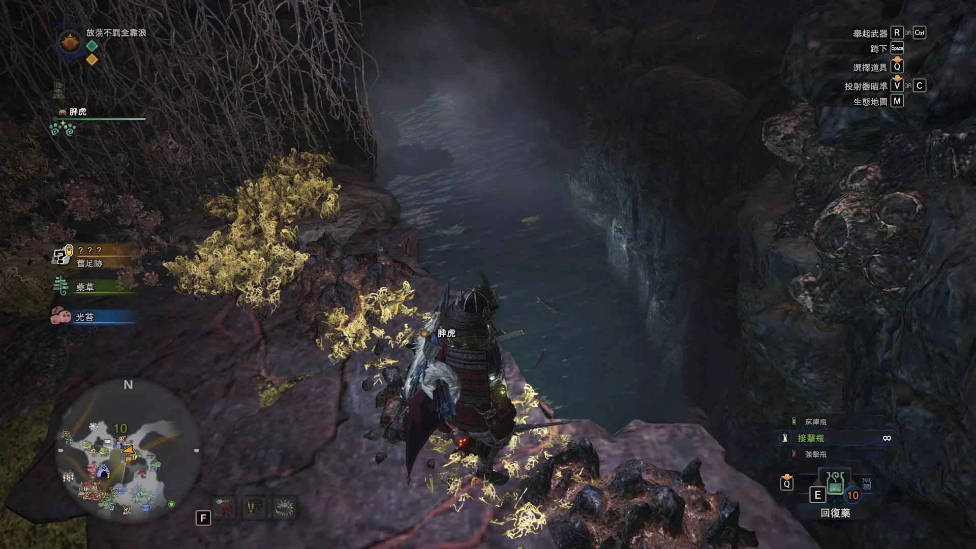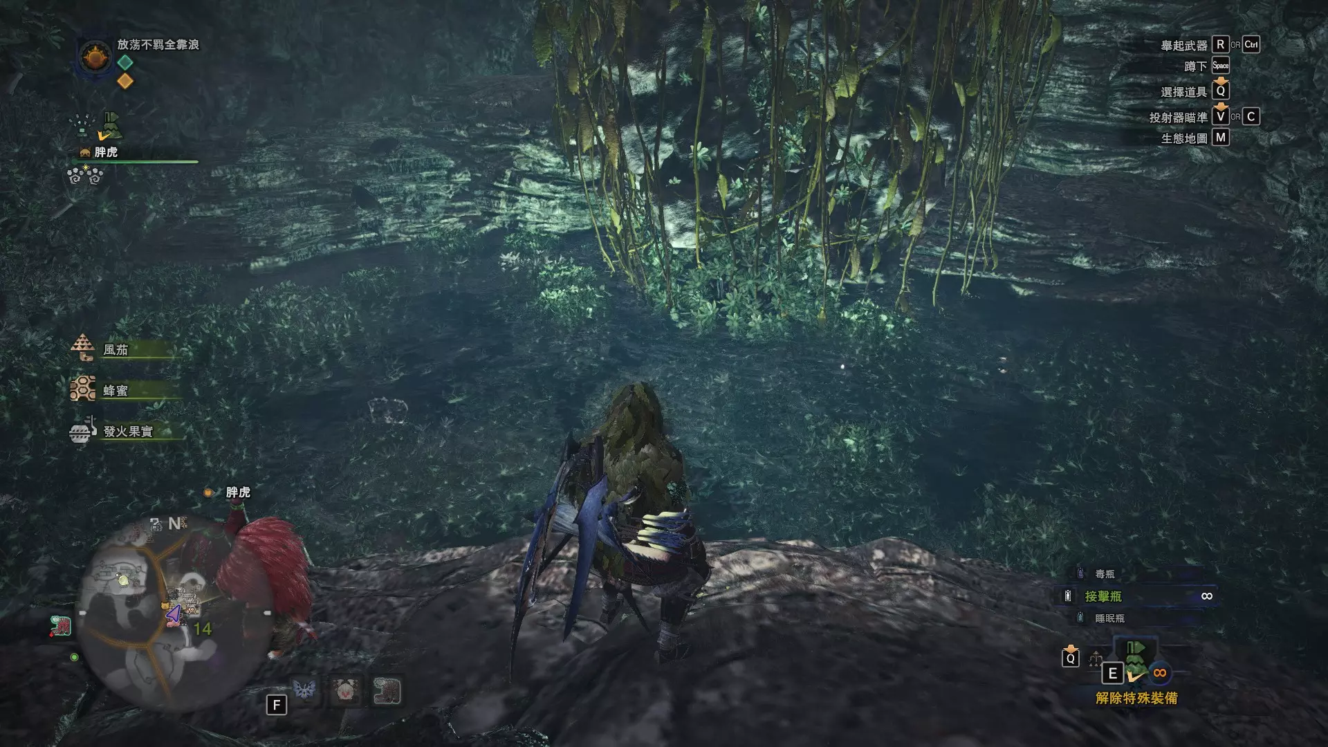 陆珊瑚台地 这张图没有推荐路线,主要是捕获「伶俐珊瑚鸟」和「摇曳鳗女王」,晚上时段在1区和3区到处逛就行,运气好的话一次就能遇到这两只稀有种环境生物 瘴气之谷 11区中央营地 [1],往下跳到高台,在光苔附近有几率能遇到「月光蜥蜴」——▶11区池塘 [2](6种巨大种鱼类)——▶15区池塘1 [3](2种巨大种鱼类)——▶15区池塘2 [4](化石汤釜和1种巨大种鱼类),到了15区后有几率会在菌猪背上遇到「粗毛秧鸡」