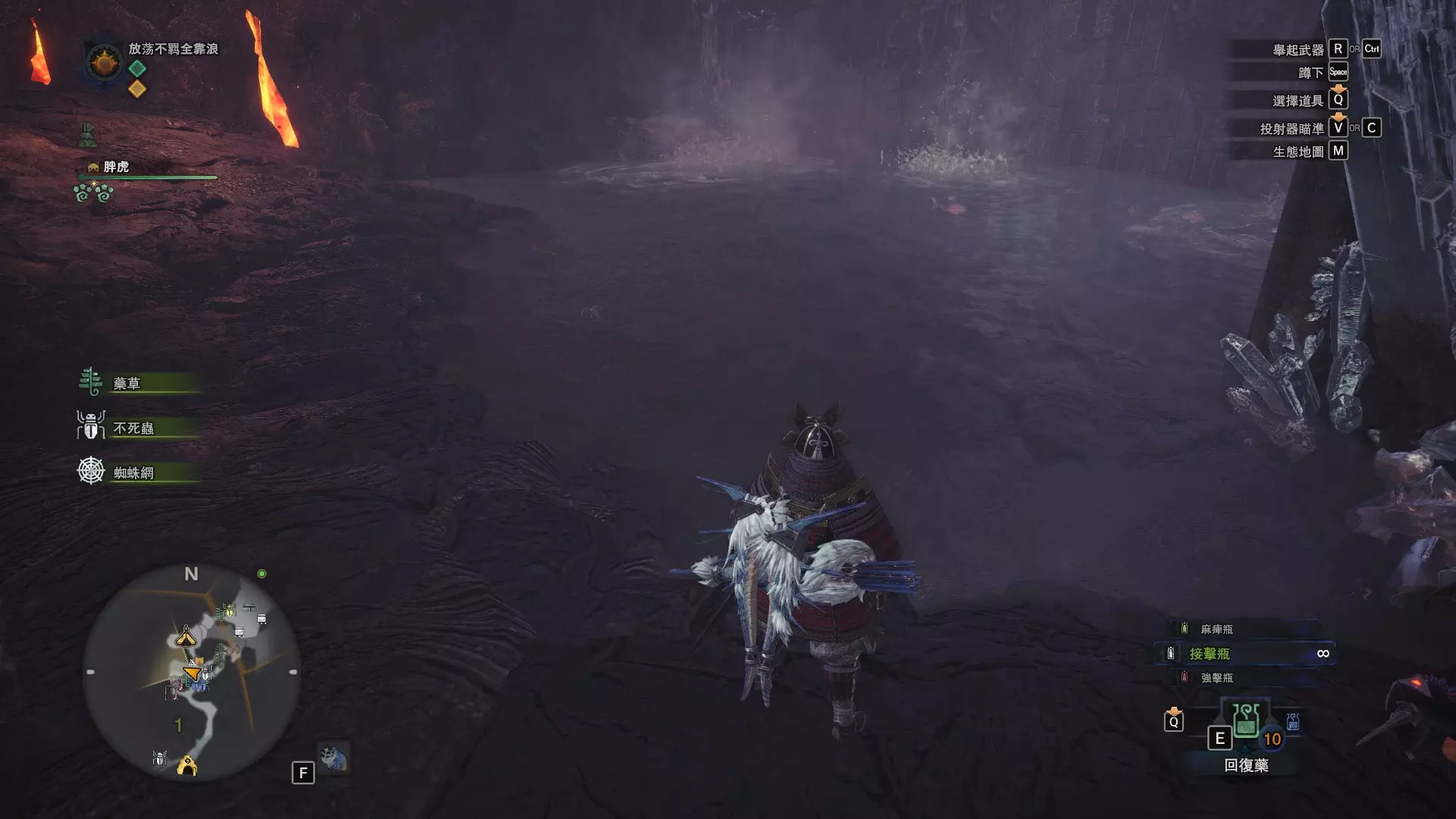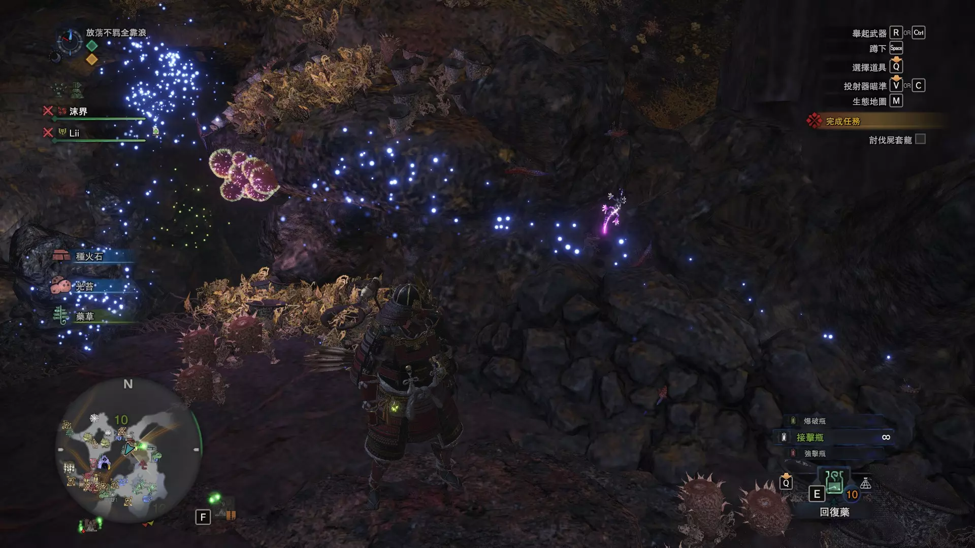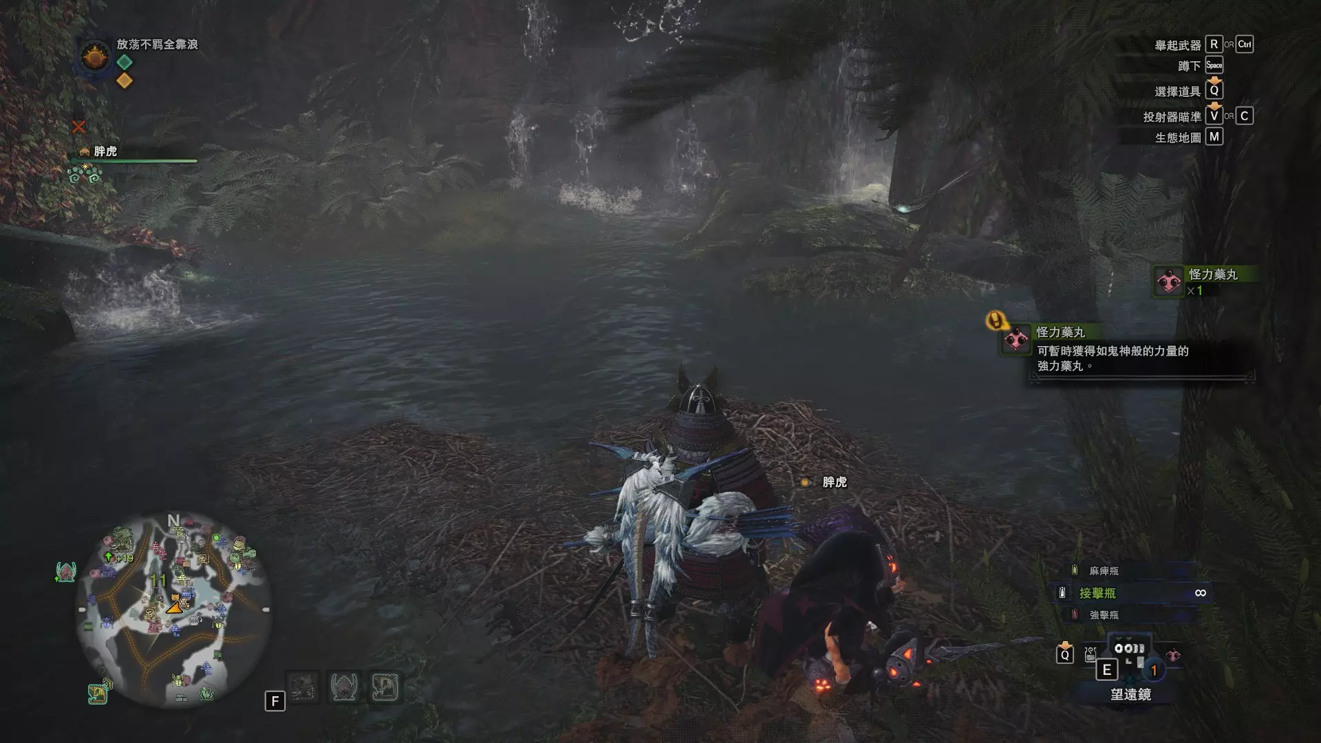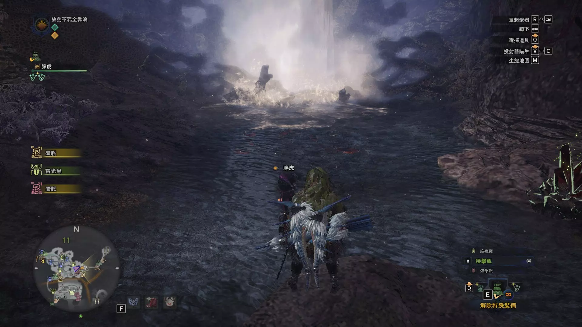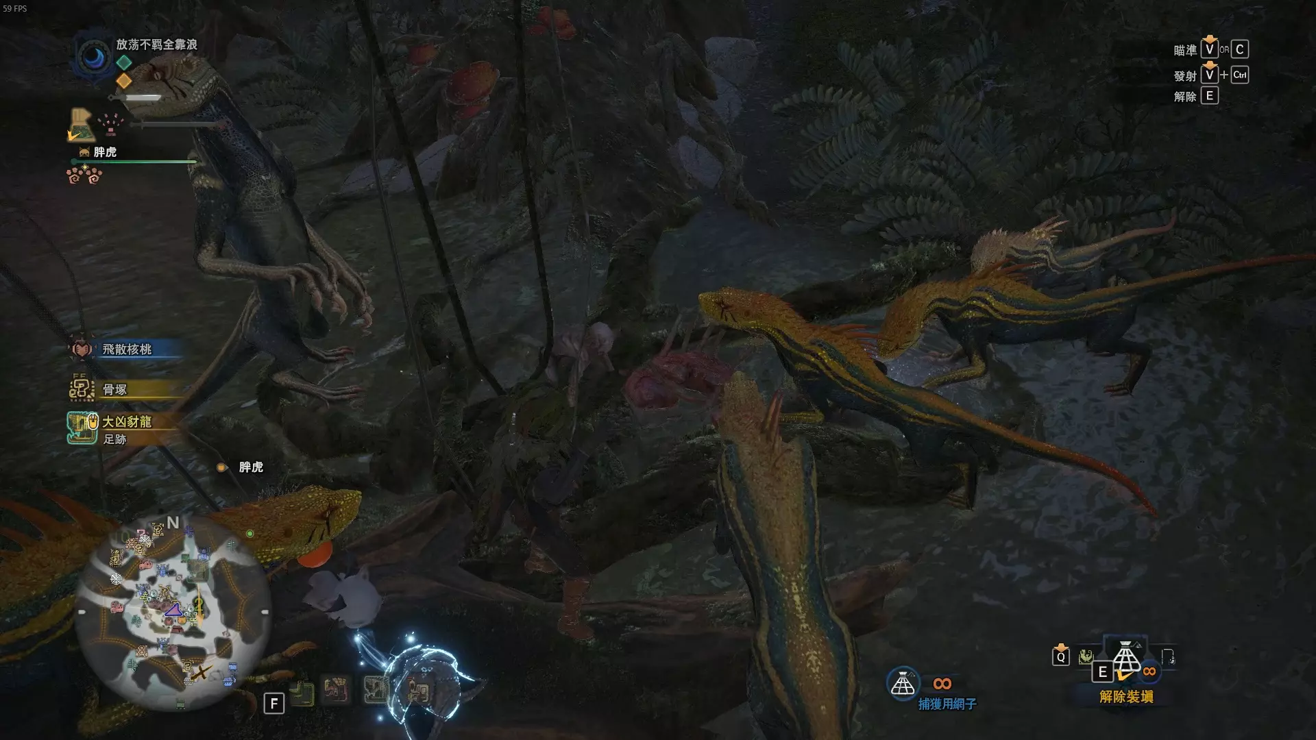 陆珊瑚台地 这张图没有推荐路线,主要是捕获「伶俐珊瑚鸟」和「摇曳鳗女王」,晚上时段在1区和3区到处逛就行,运气好的话一次就能遇到这两只稀有种环境生物 瘴气之谷 11区中央营地 [1],往下跳到高台,在光苔附近有几率能遇到「月光蜥蜴」——▶11区池塘 [2](6种巨大种鱼类)——▶15区池塘1 [3](2种巨大种鱼类)——▶15区池塘2 [4](化石汤釜和1种巨大种鱼类),到了15区后有几率会在菌猪背上遇到「粗毛秧鸡」