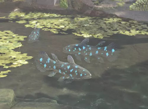 古代树森林11区池塘1 鱼类:泪之龟壳攀鲈、破裂龙鱼、爆裂龙鱼、粉色异形鱼、刺身鱼