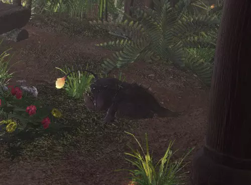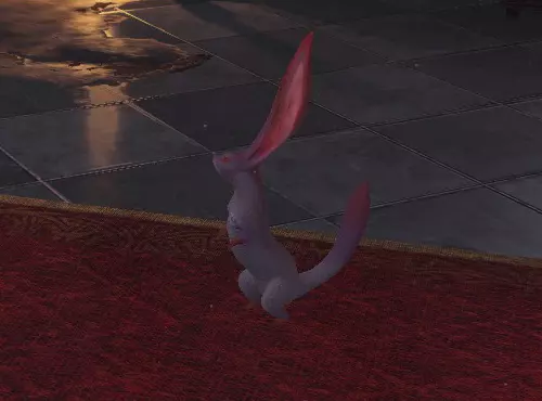这是一种平常不易见到的尊贵生物。据说会在气候良好时出现,并指引迷失道路的人。古代树森林和大蚁塚荒地中,粉色兔子在晴天时有几率出现,有绕行兔的地方也都有几率出现。森林蜥蜴