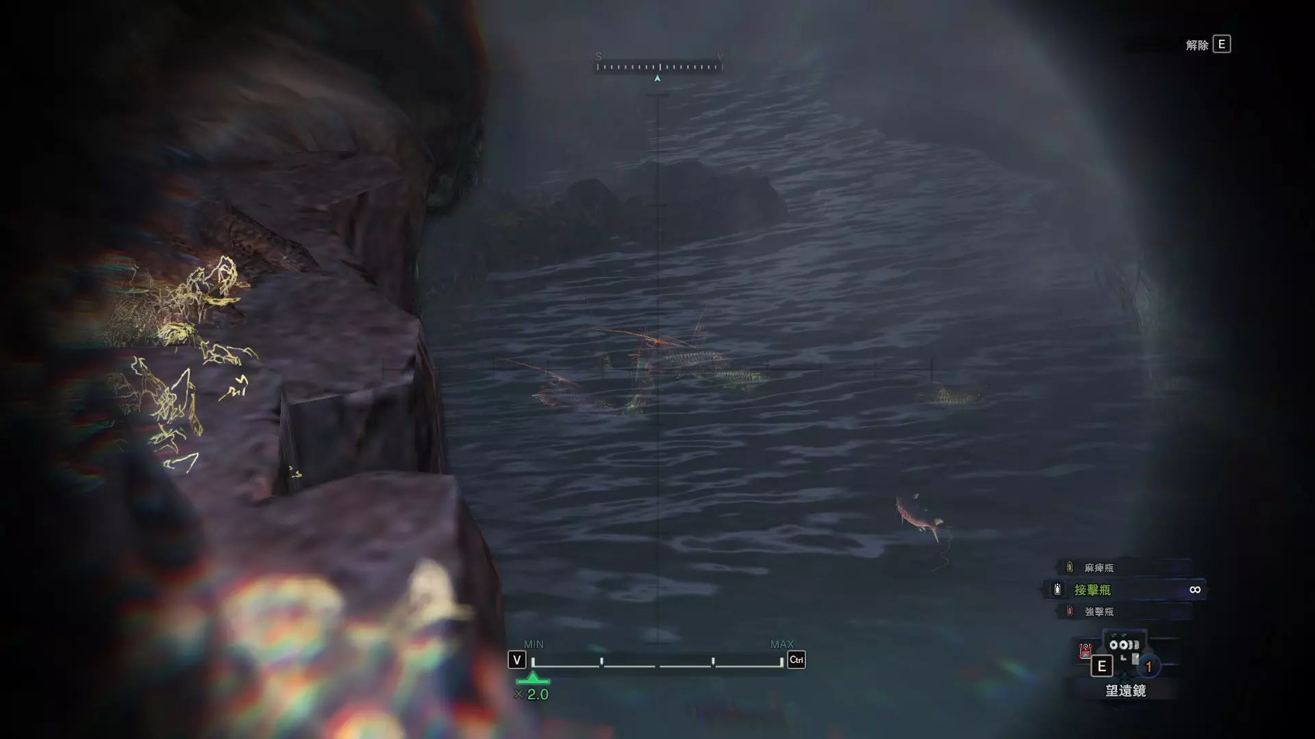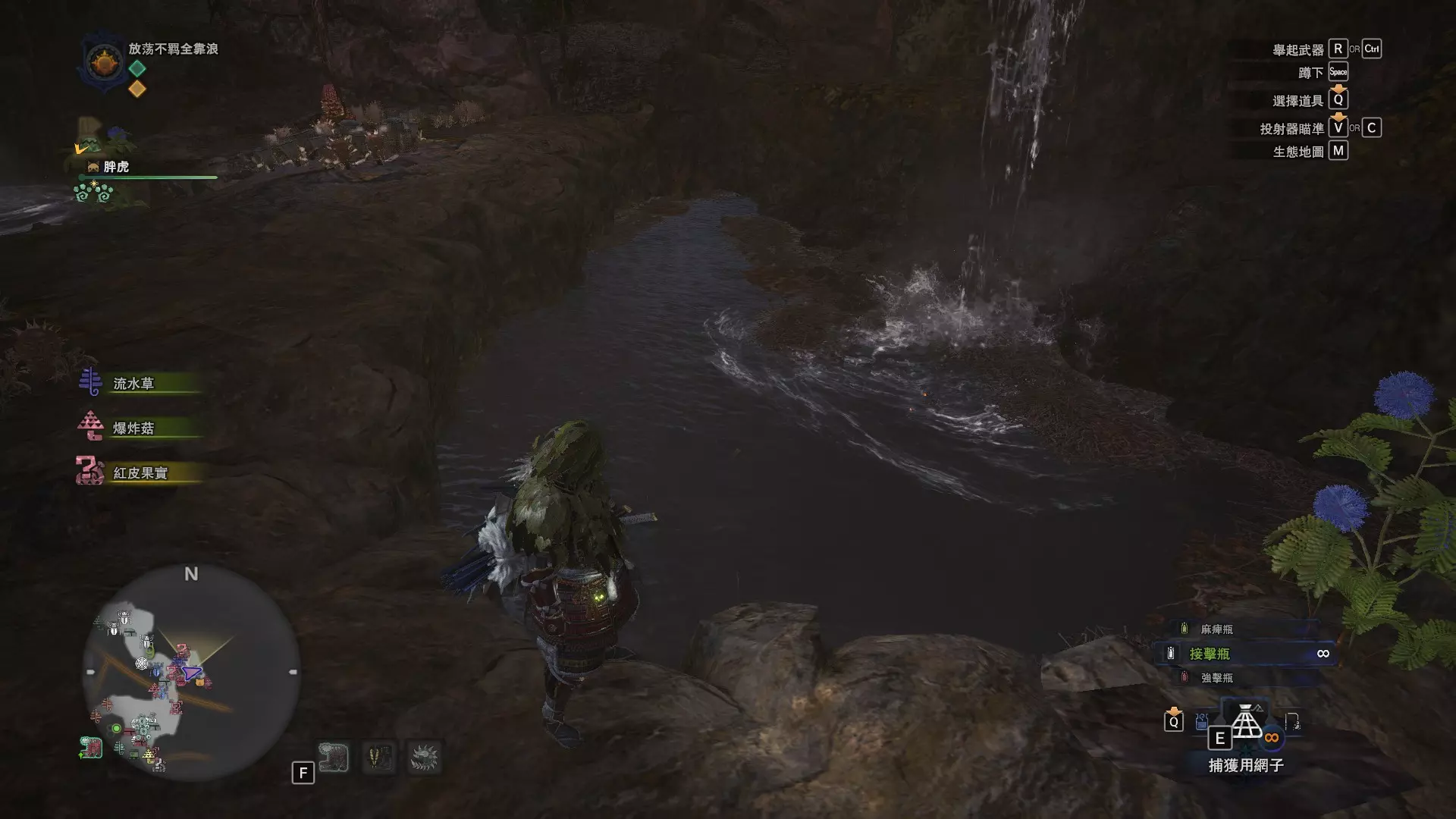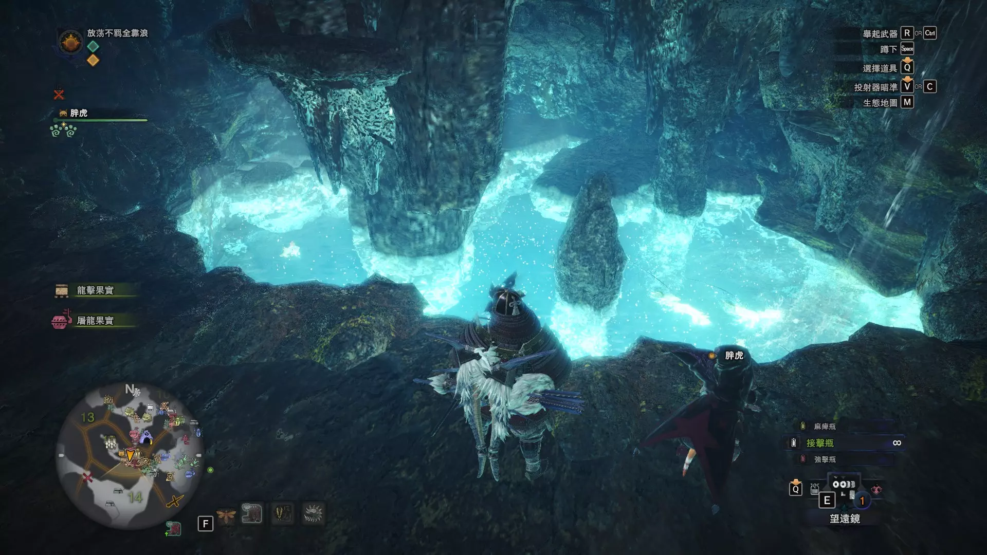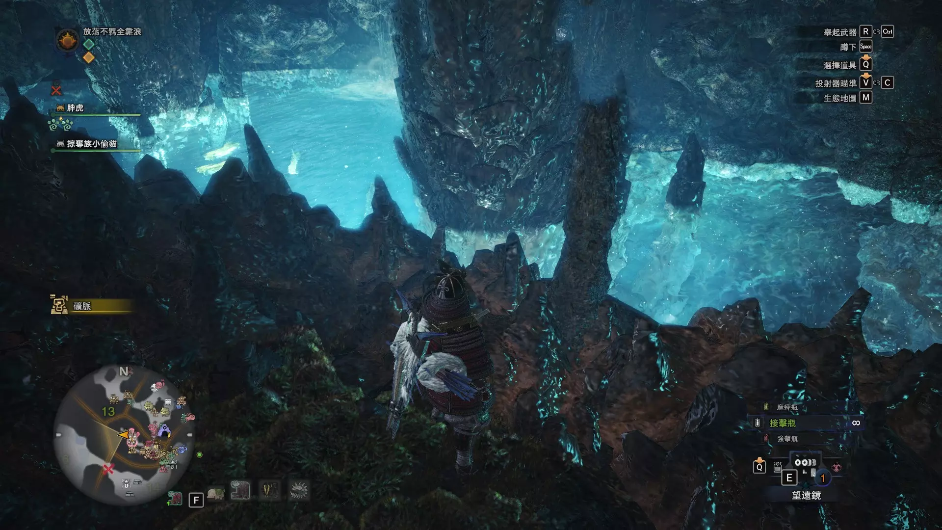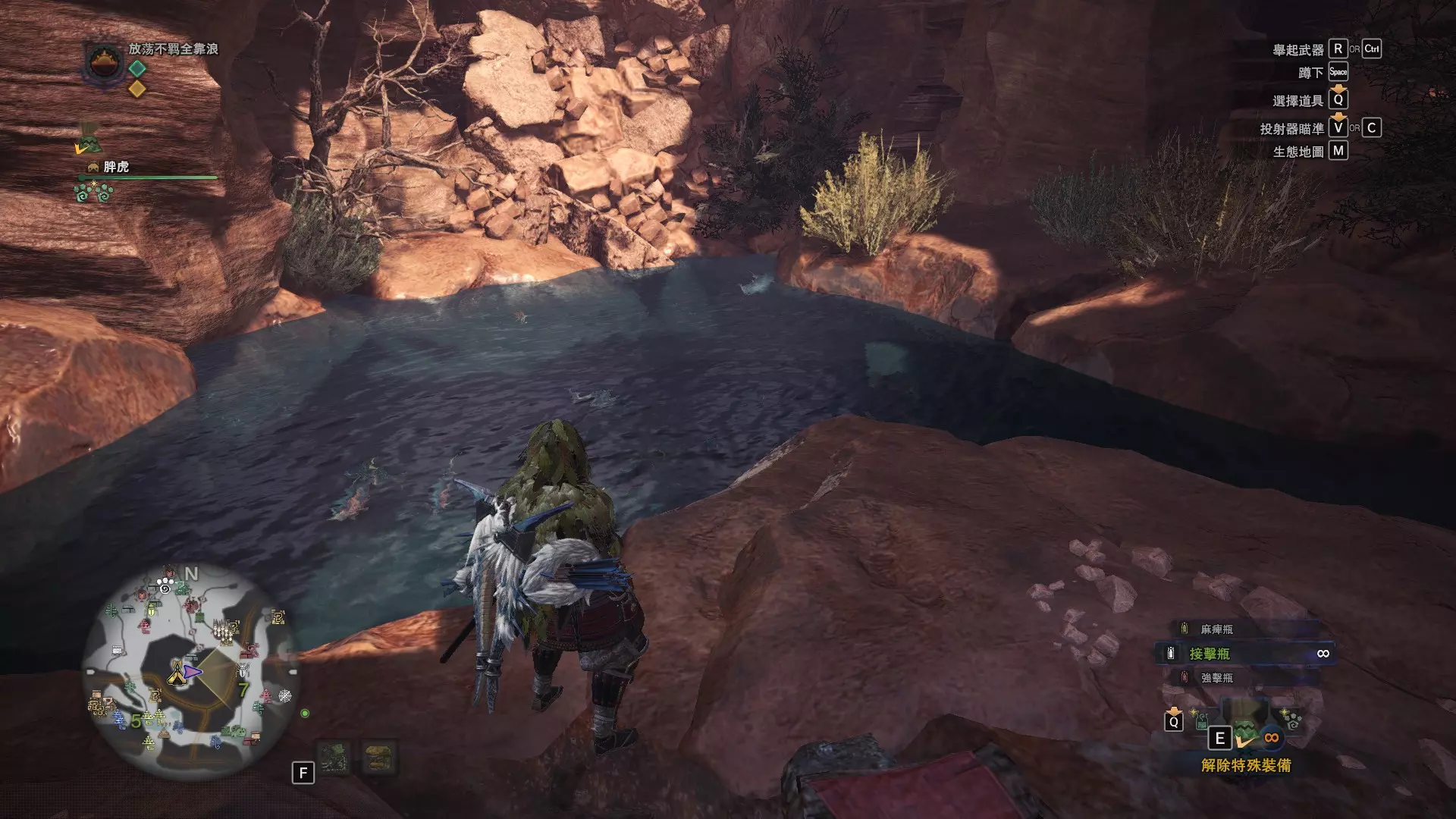 龙结晶之地 这张图没有推荐路线,反复刷8区的东营地即可,这里是块宝地(月光蜥蜴、化石汤釜和8种巨大种鱼类) 捕获上等爆裂龙鱼的推荐地点 上等爆裂龙鱼可以说是游戏中最难遇到的稀有种环境生物了,个人推荐两个地点,瘴气之谷11区池塘和龙结晶之地8区东营地池塘(大蚁塚荒地10区池塘下层因距离较远故不推荐),两个池塘来回刷总会出现的,瘴气之谷11区的池塘距离玩家有点远,可以去杂货店买个望远镜观察,每个池塘的鱼类数量都是固定的,如果发现多出了一条,那么其中必定有一条巨大种。如图就出现了4条爆裂龙鱼(一般只会出现3条),其中有一条爆裂龙鱼明显比其他的都大