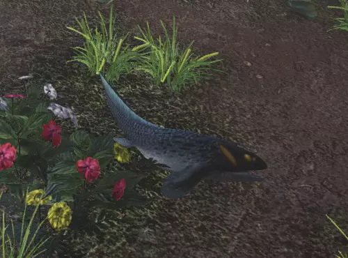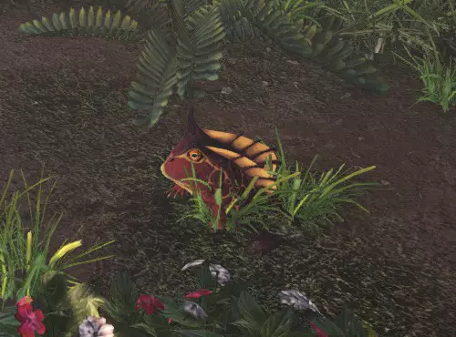 身上残留着浓厚原始两栖类特征的生物。下雨时,会发出独特的叫声。 古代树森林和大蚁塚荒地中常见的两栖鱼。 古代树森林:11区池塘1和地下水道 大蚁塚荒地:1区池塘、2区池塘 粉色异形鱼