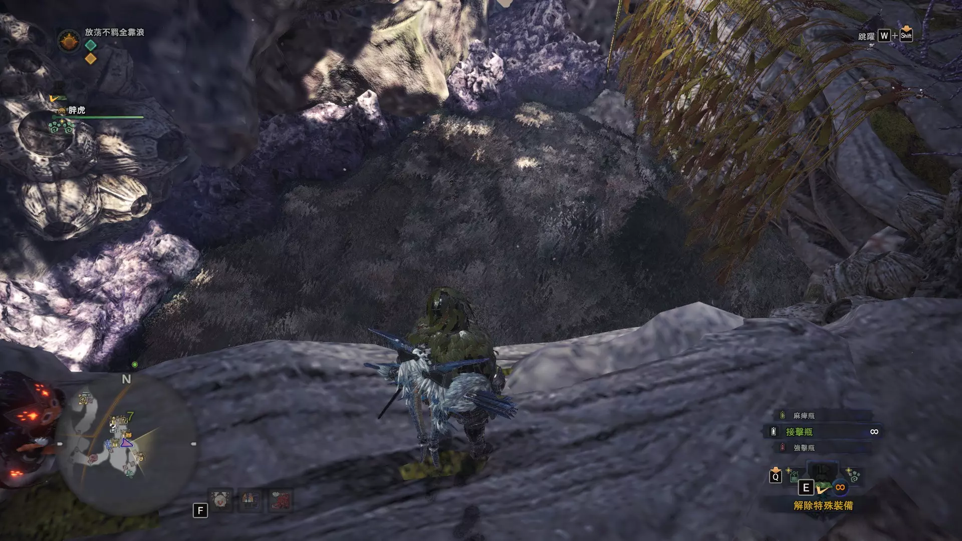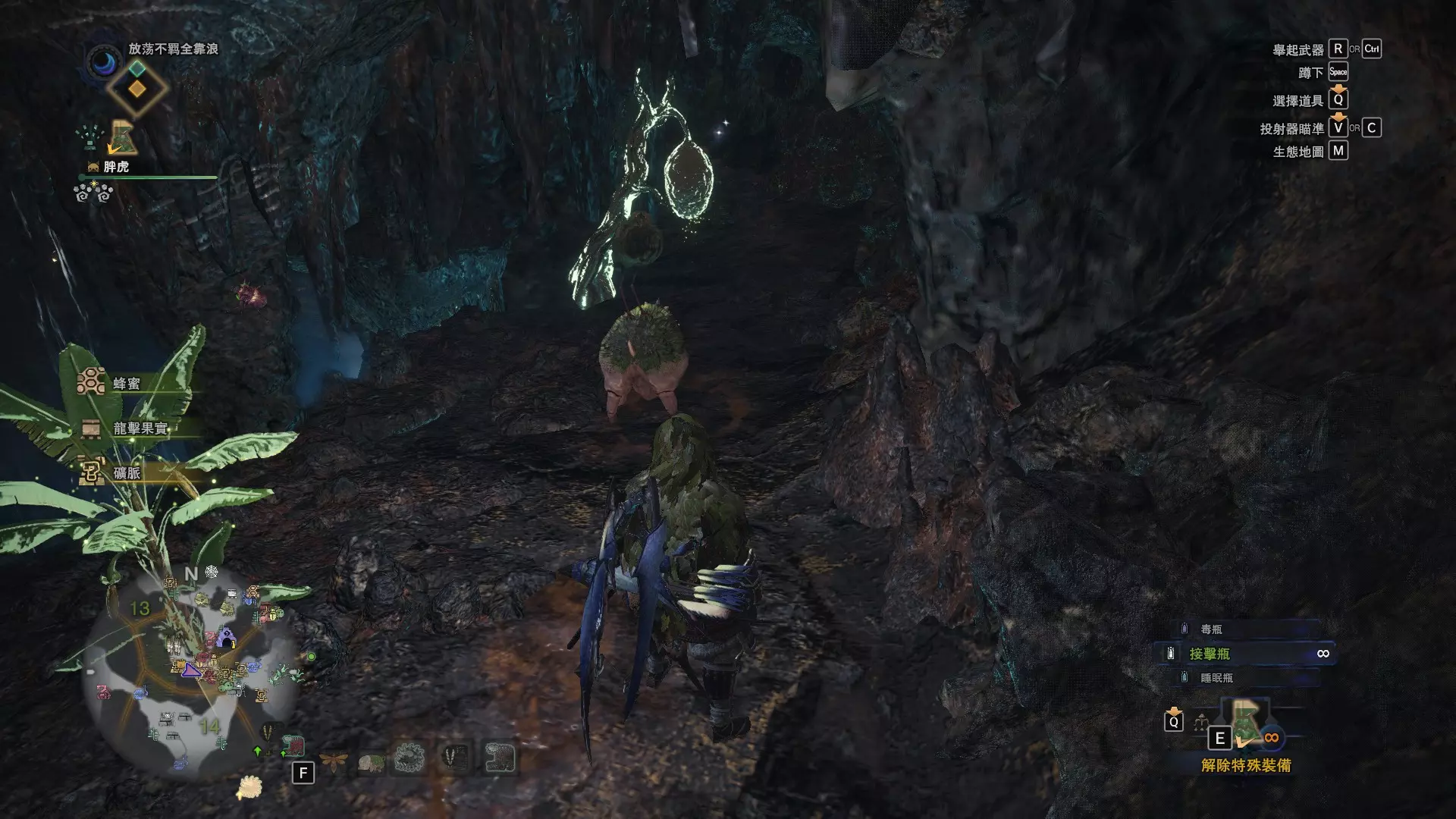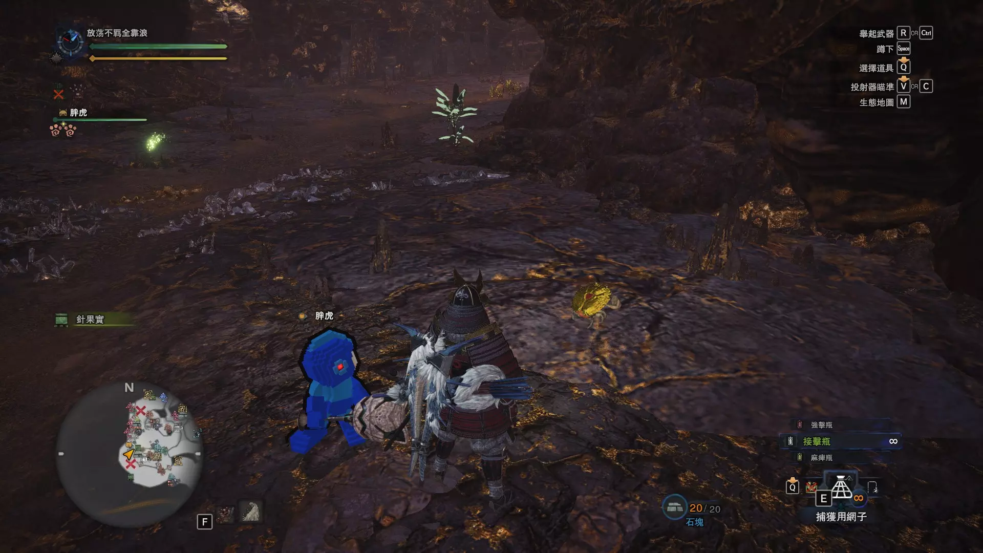 以滚动方式搬运岩石的昆虫。若采集其滚动的岩石,也可作为投射器的爆发弹使用。龙结晶之地有时会有岩石滚动,从1区的南营地出去即可发现。麻痹瓦斯蛙