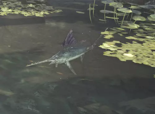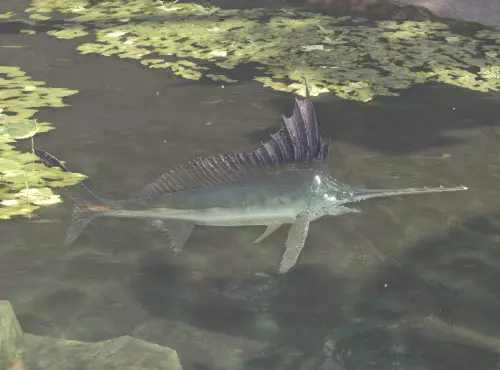 上颚长得有如剑般锐利的鱼类。栖息在温暖的海域中,不会出现在海水冰冷的夜晚。只在古代树森林4区海边,有几率会在白天出现。★帝王旗鱼