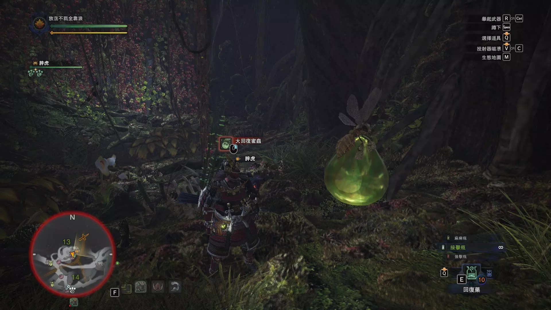 体内累积着具有高浓度回复效果蜜汁的虫类。淋上这种蜜汁后,可获得持续性的回复效果。古代树森林中,可在古代树森林13区最下层捕获。(详情请查看「固定地点出现的环境生物」) 飞天乌帽