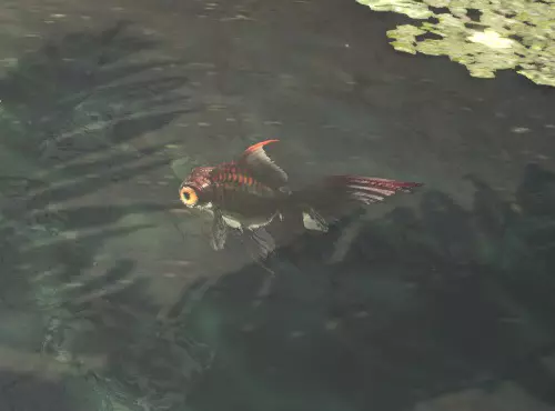 特大尺寸的小金鱼。不仅体型庞大,其色泽与光辉也达到了艺术品的境界。在有普通种小金鱼出现的地方,都有几率遇到它。刺身鱼