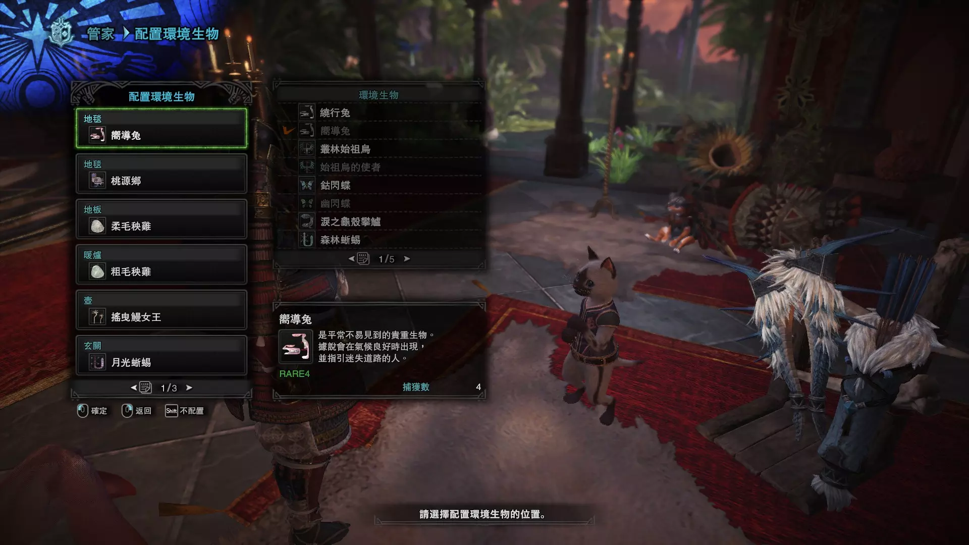 捕获到的环境生物可以放到小屋里饲养,找小屋管家进行「配置环境生物」来装饰自己的小屋
