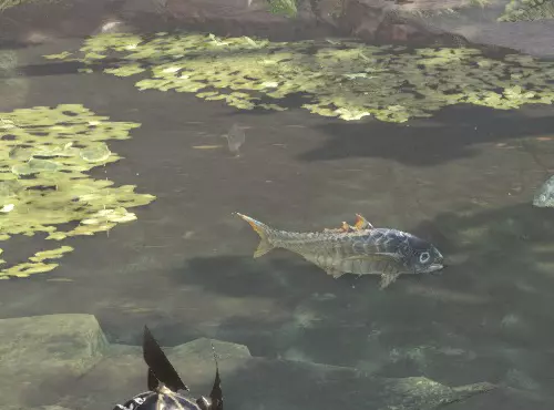瘴气之谷11区池塘(位于11区中央营地下方) 鱼类:破裂龙鱼、爆裂龙鱼、黄金鱼、粉色异形鱼、坚硬竹荚鱼、刺身鱼