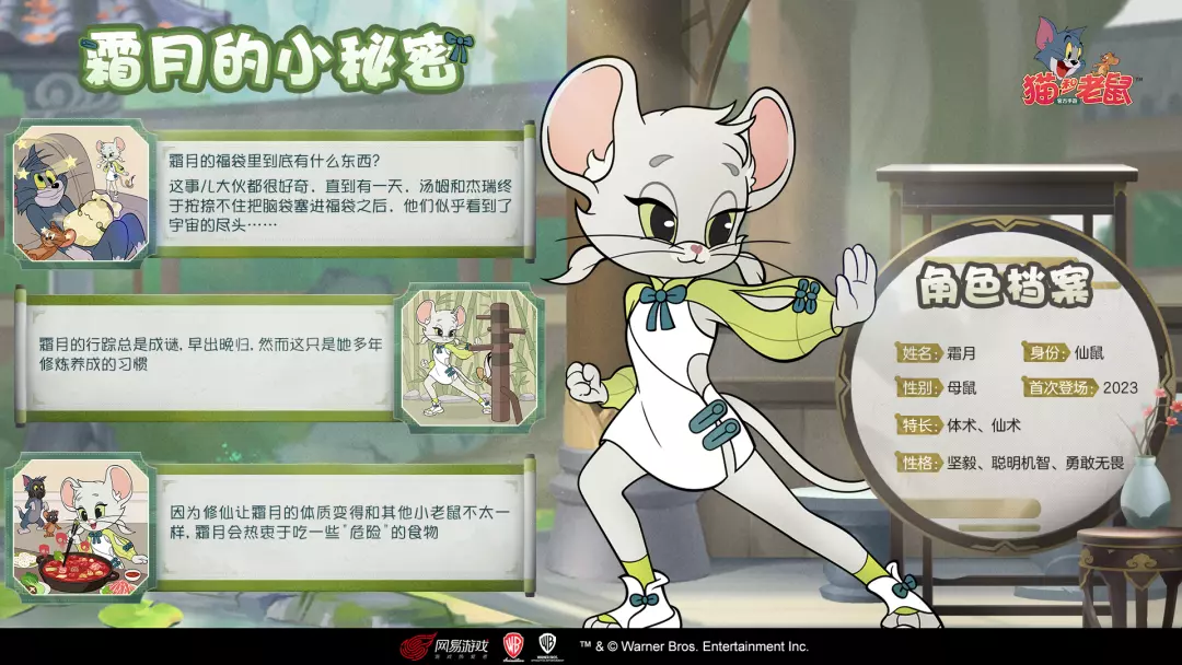 以上便是霜月角色档案的全部内容。这位性格坚毅、机智勇敢的仙鼠,凭借自身独特的魅力,早已成为猫鼠之家里一道别致的风景~