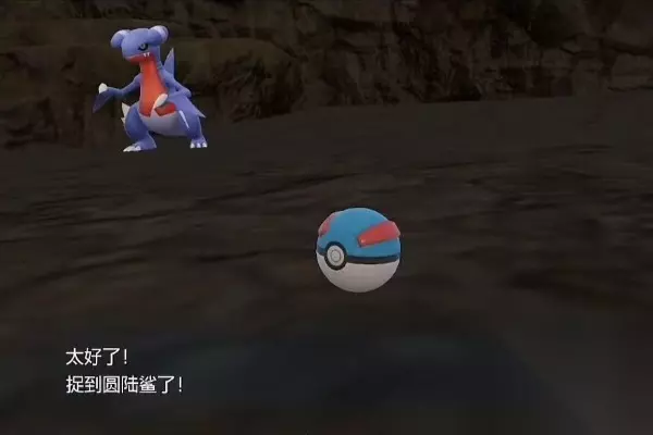 4、圆陆鲨的闪光是深蓝色,在洞穴里面很好区分,然后给他一个高级精灵球,就可以成功收服。